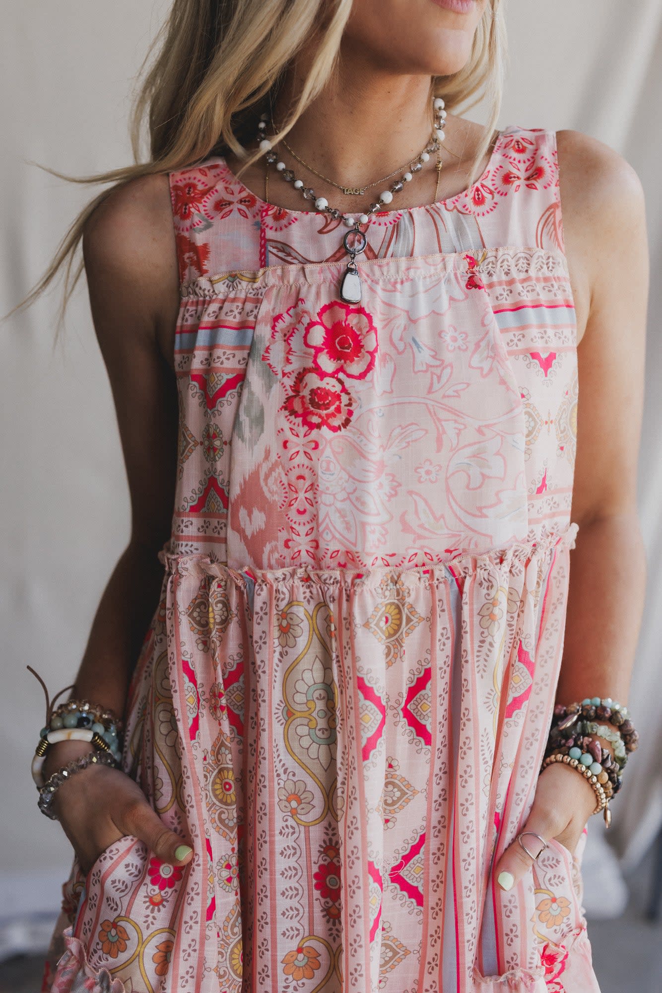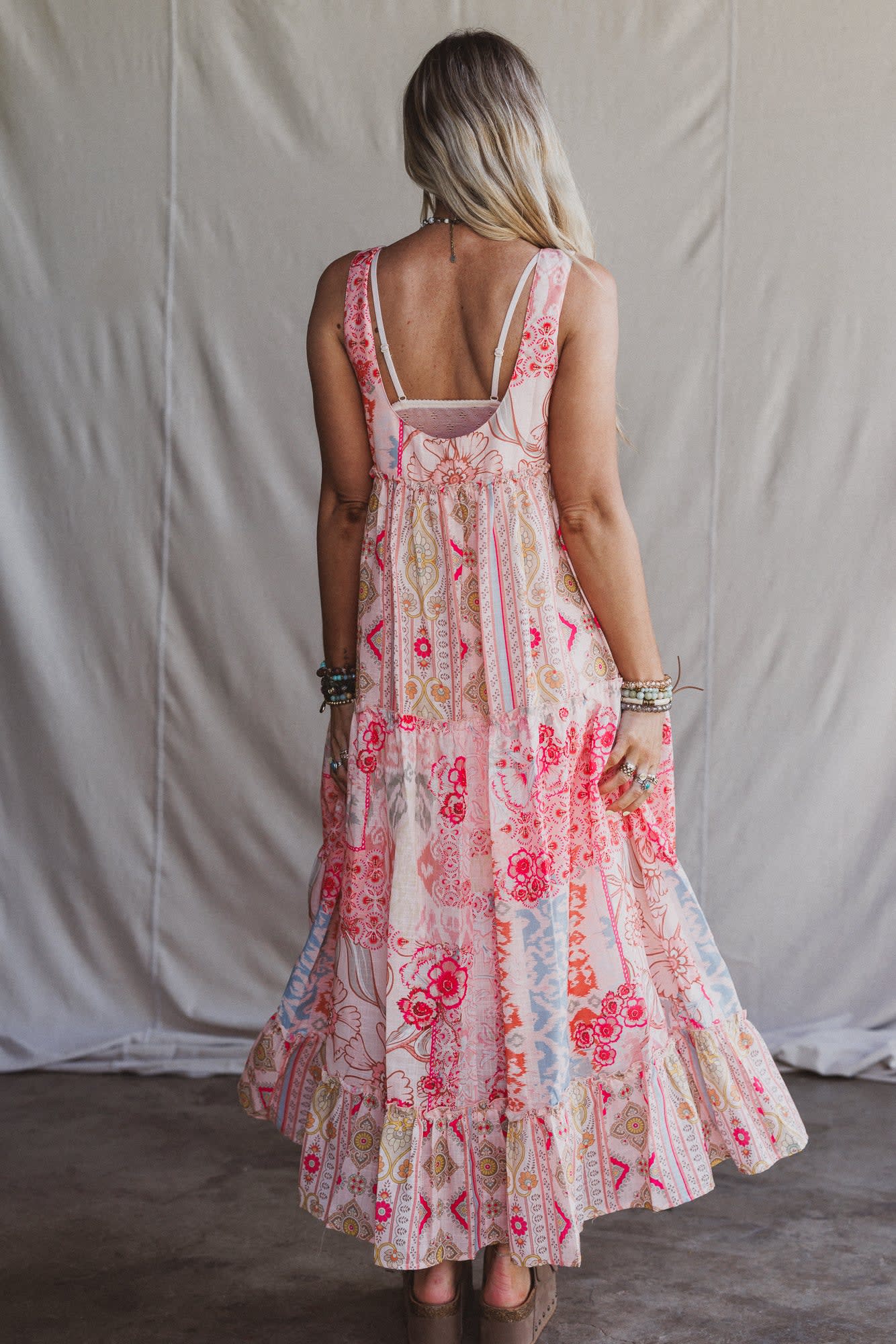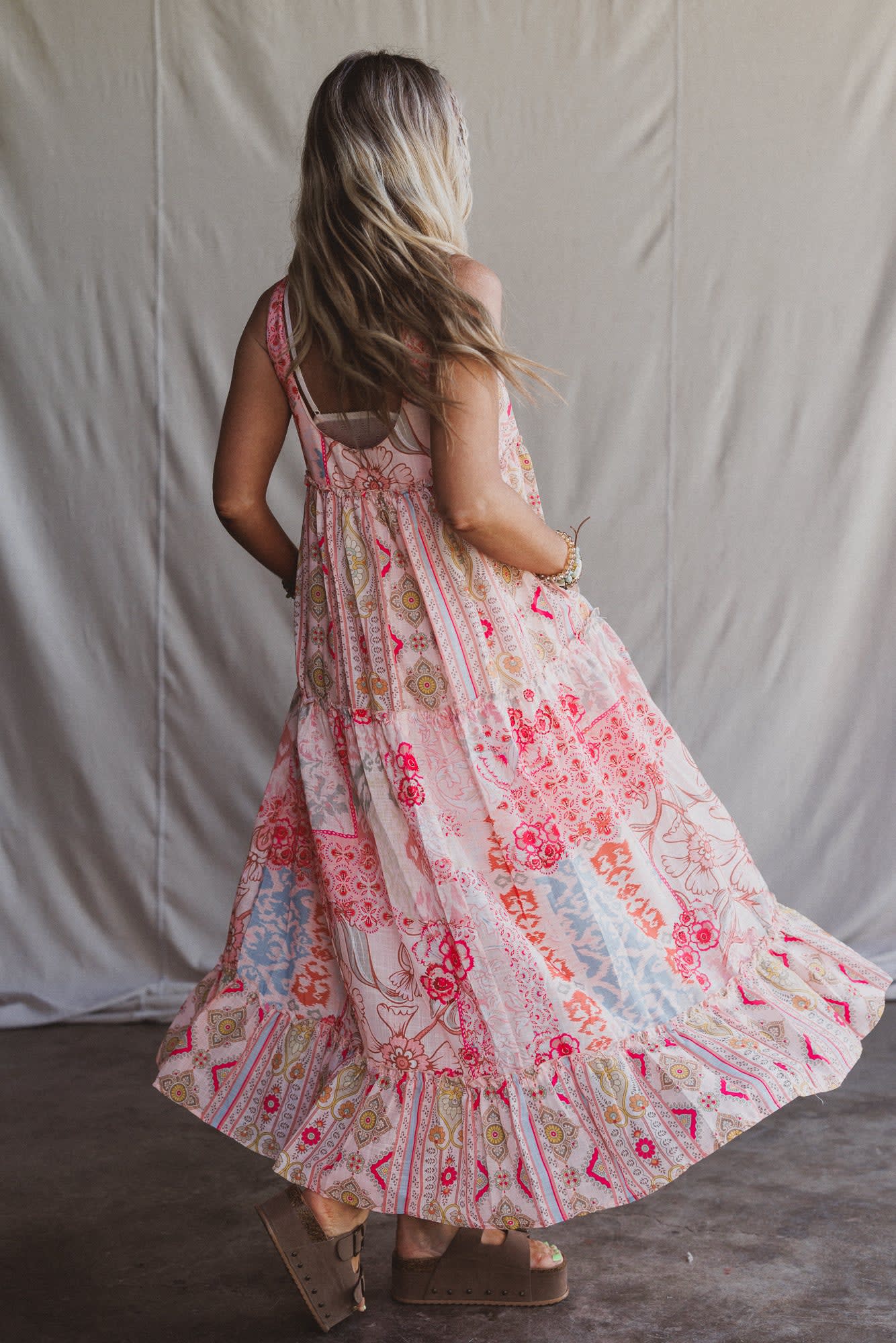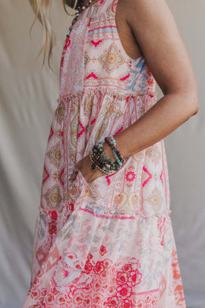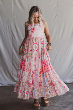 This gorgeous boho maxi dress features a vibrant pattern that will make an entrance every time.
