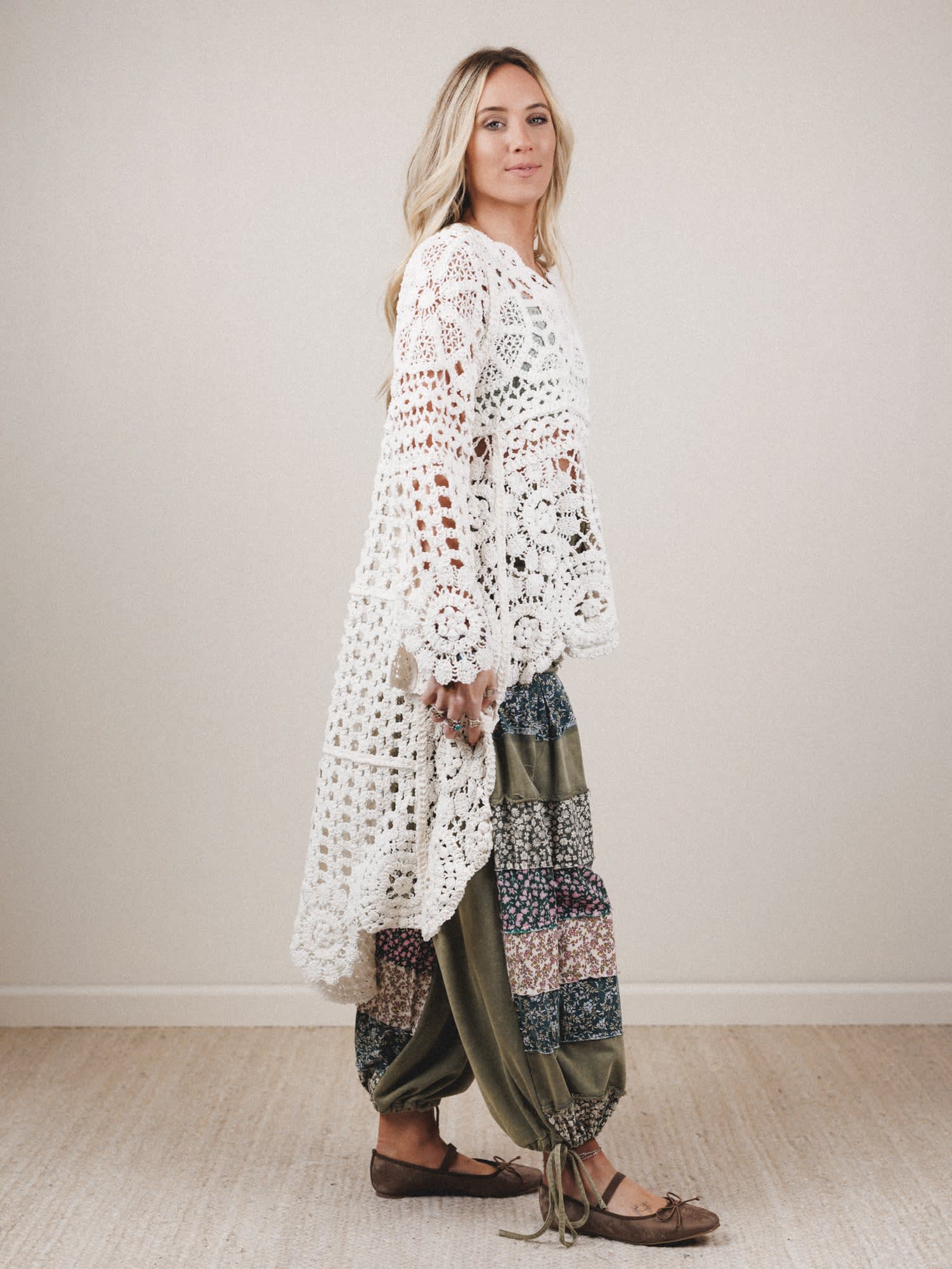 • Style it with patchwork pants or cutoffs for that effortless boho goddess look