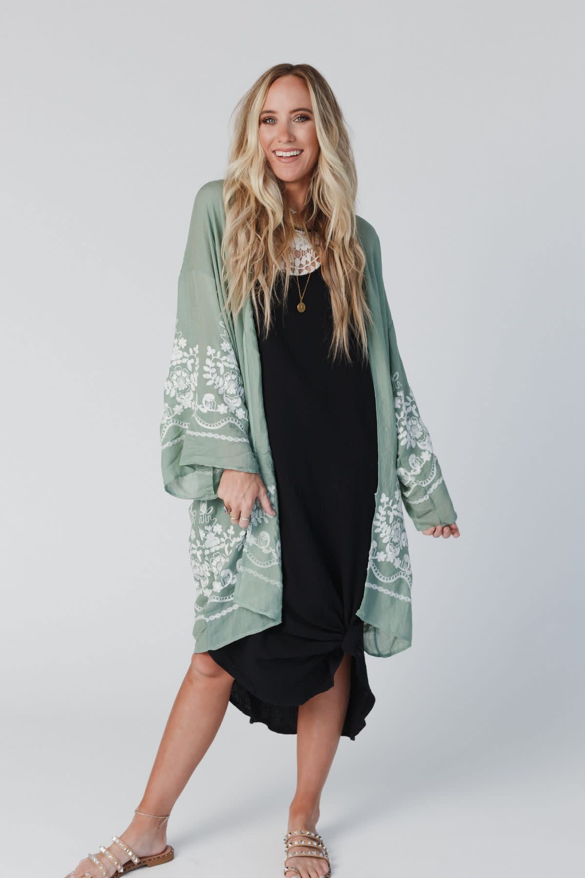If you’re looking for what to wear over a simple dress to instantly make it feel styled, this is it. Lightweight and effortlessly feminine, this boho kimono adds the perfect touch of romance to everything from brunch outfits to casual date night looks.