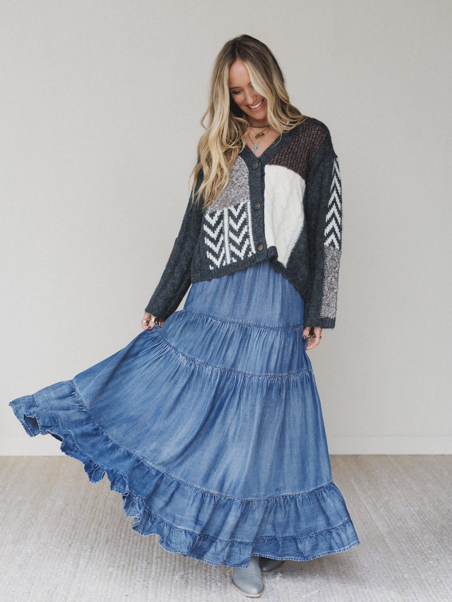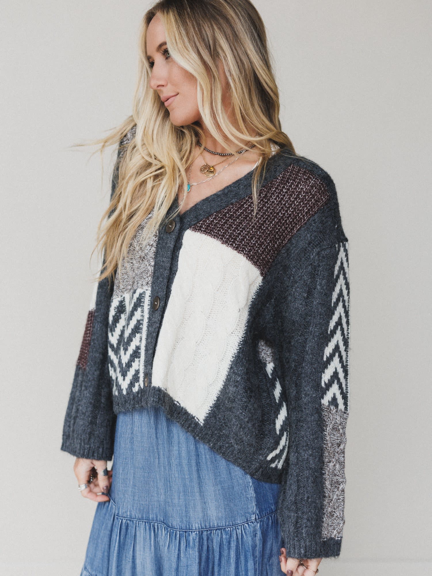 Cozy meets eclectic in the Meadow Brook Sweater—a patchwork of textures and patterns that feels like a wearable work of art. Perfect for chilly mornings, coffee dates, or strolls through fall festivals, this boho knit is as comforting as it is eye-catching.