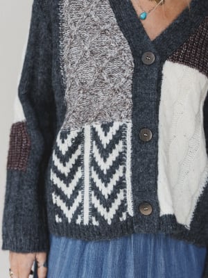 • Features a mix of cable, chevron, and diamond knit patterns for a unique, hand-crafted vibe