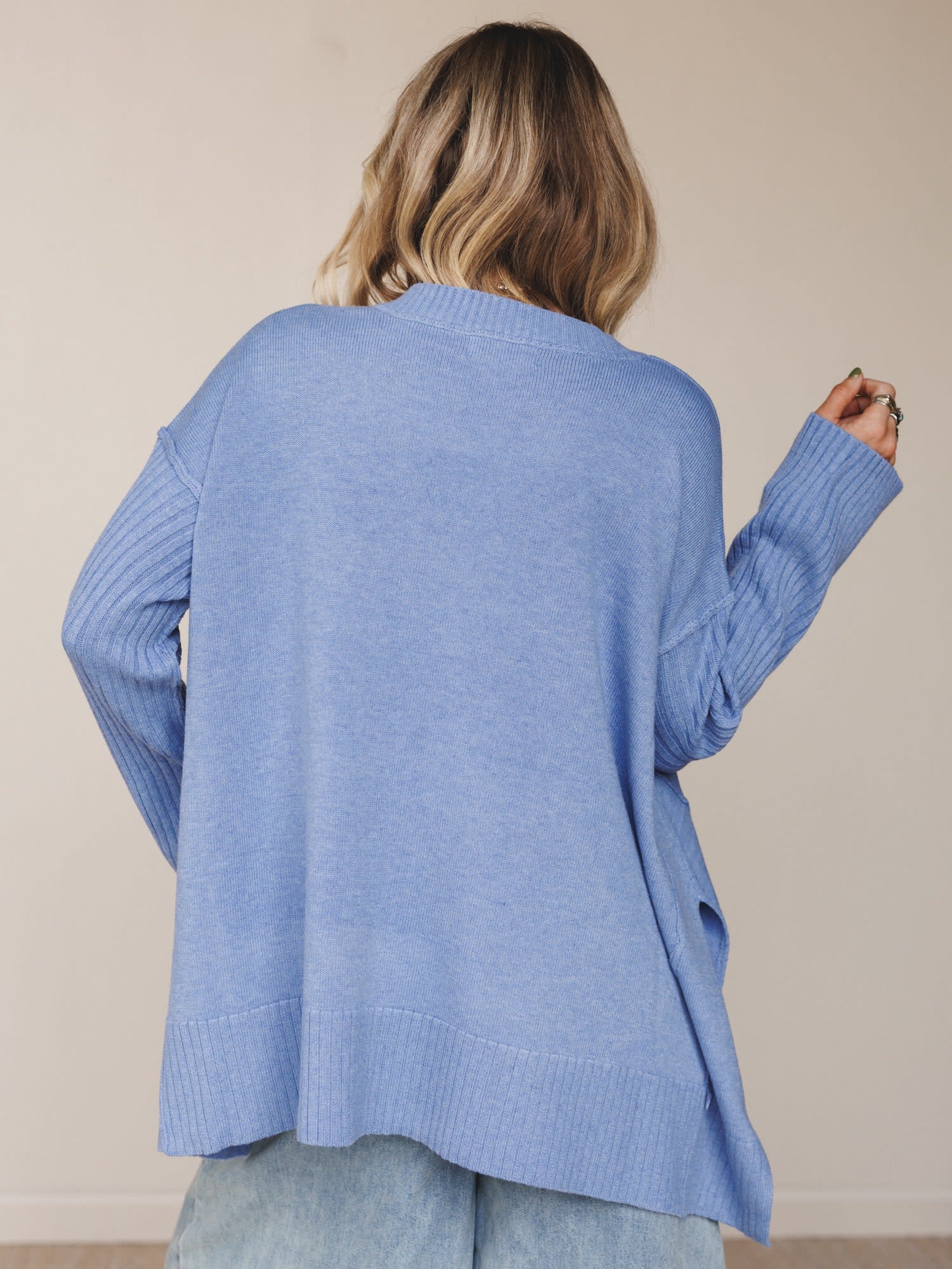 Cool mornings call for cozy layers—and this one checks every box. The Meadow Mornings Sweater is all about effortless comfort, with a laid-back drape and a sky-blue hue that feels fresh and easy all year long.