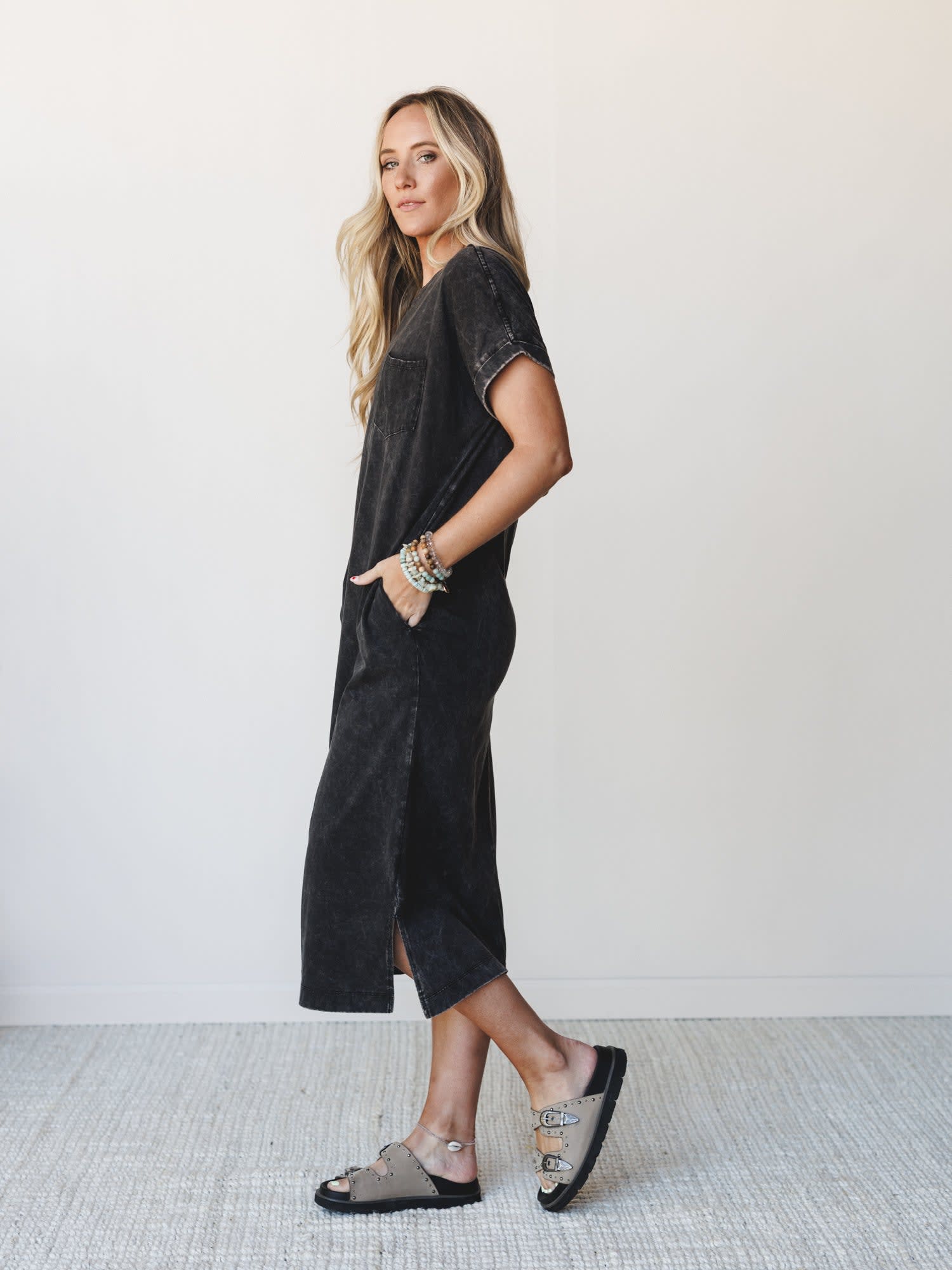 - Midi dress in soft knit fabric provides a fitted silhouette that flatters while maintaining all-day comfort.