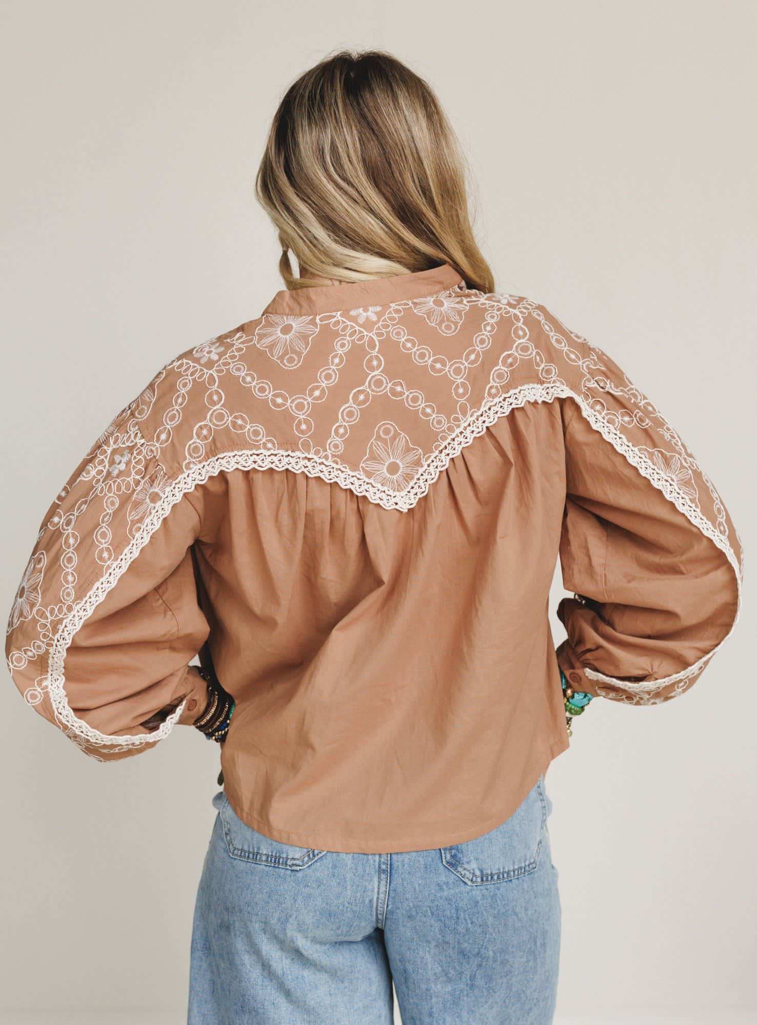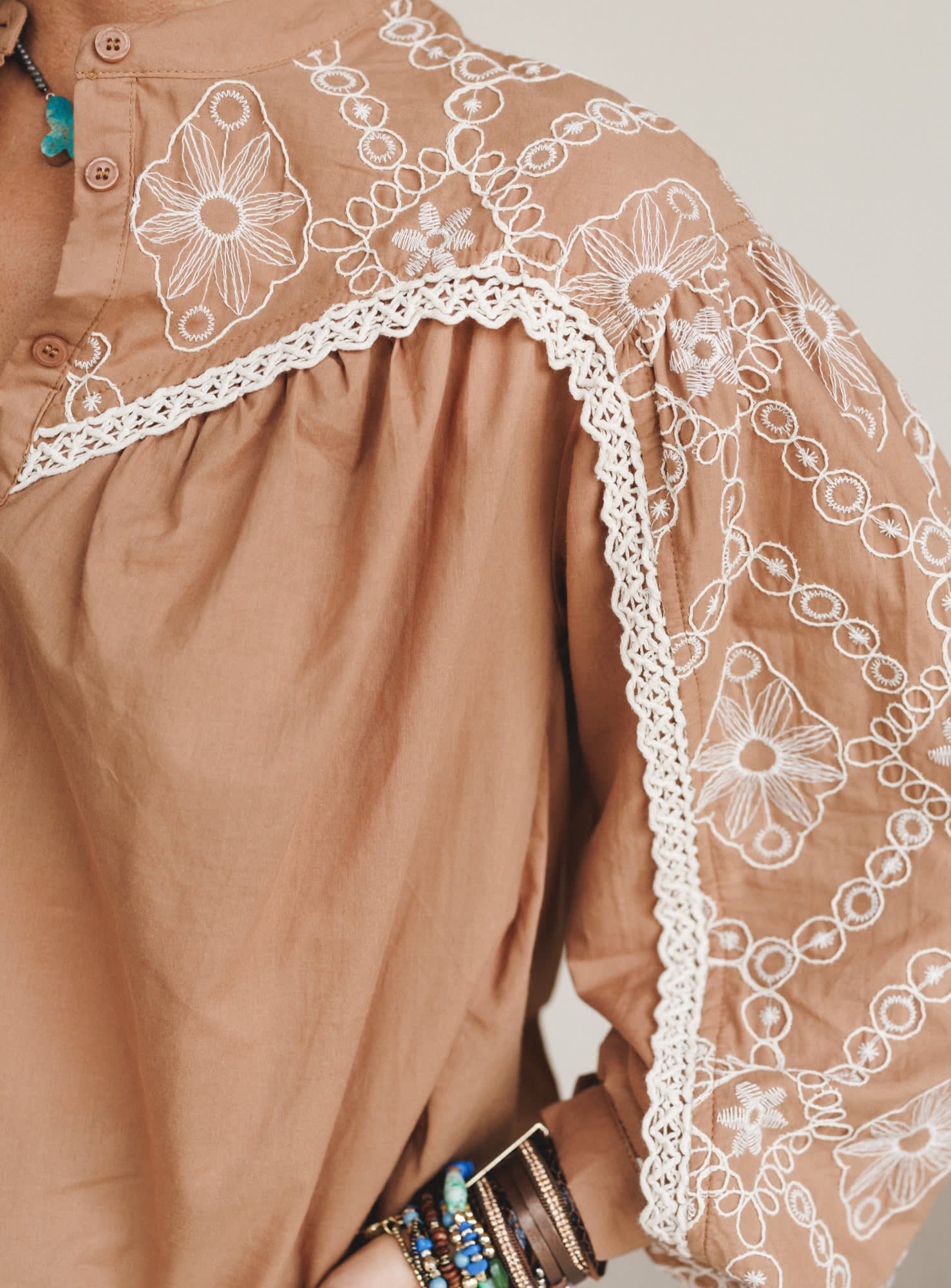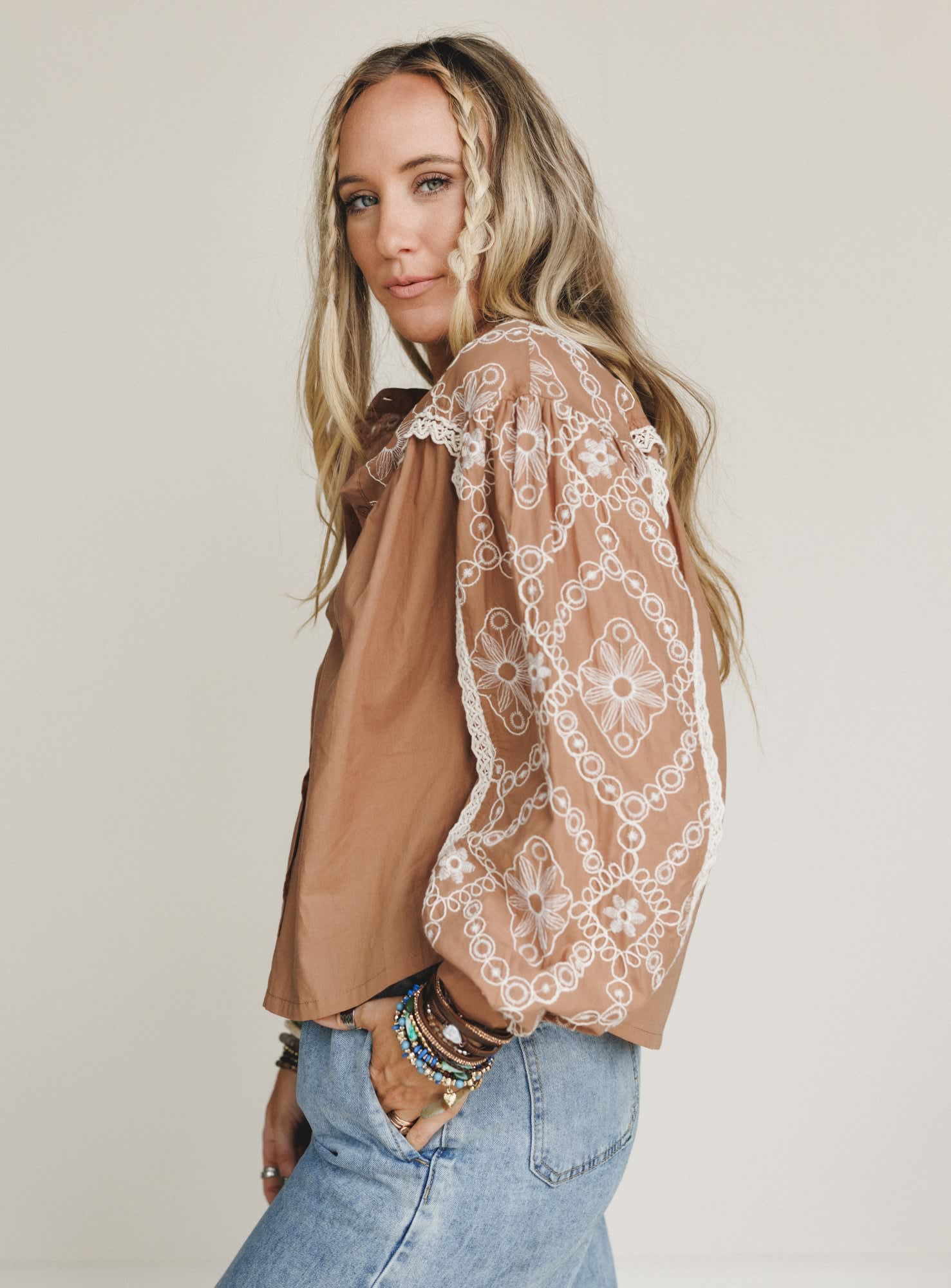 Soft and striking, the Midday Muse Top is the perfect blend of vintage charm and modern boho soul. With delicate embroidery and dramatic sleeves, it’s made for golden hour hangs and daydreamy afternoons.
