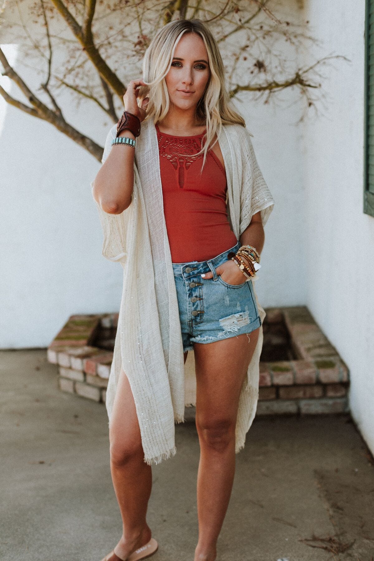 Weekend-ready and made to catch the light, this is the layer you’ll grab when you’re planning a beach vacation outfit or dressing up a simple tank and denim. It’s effortlessly breezy with just the right hint of sparkle.