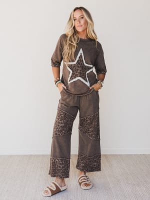 These are the kind of pants that make staying comfy look effortlessly fierce. With a patchwork design that mixes vintage-inspired wash and bold leopard print, the Milana Pants bring just the right amount of wild to your everyday rotation.