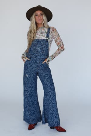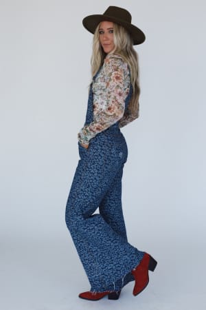 We're so excited to bring you a fun new print on a classic favorite! The ultimate wide leg jumpsuit is here, the Milly Distressed Hem Wide Leg Overalls! You are going to wear these year-round because of the comfortable denim fabric, the perfect wide leg silhouette, distressed details throughout for added style, functional pockets, and classic overall-style adjustable straps.