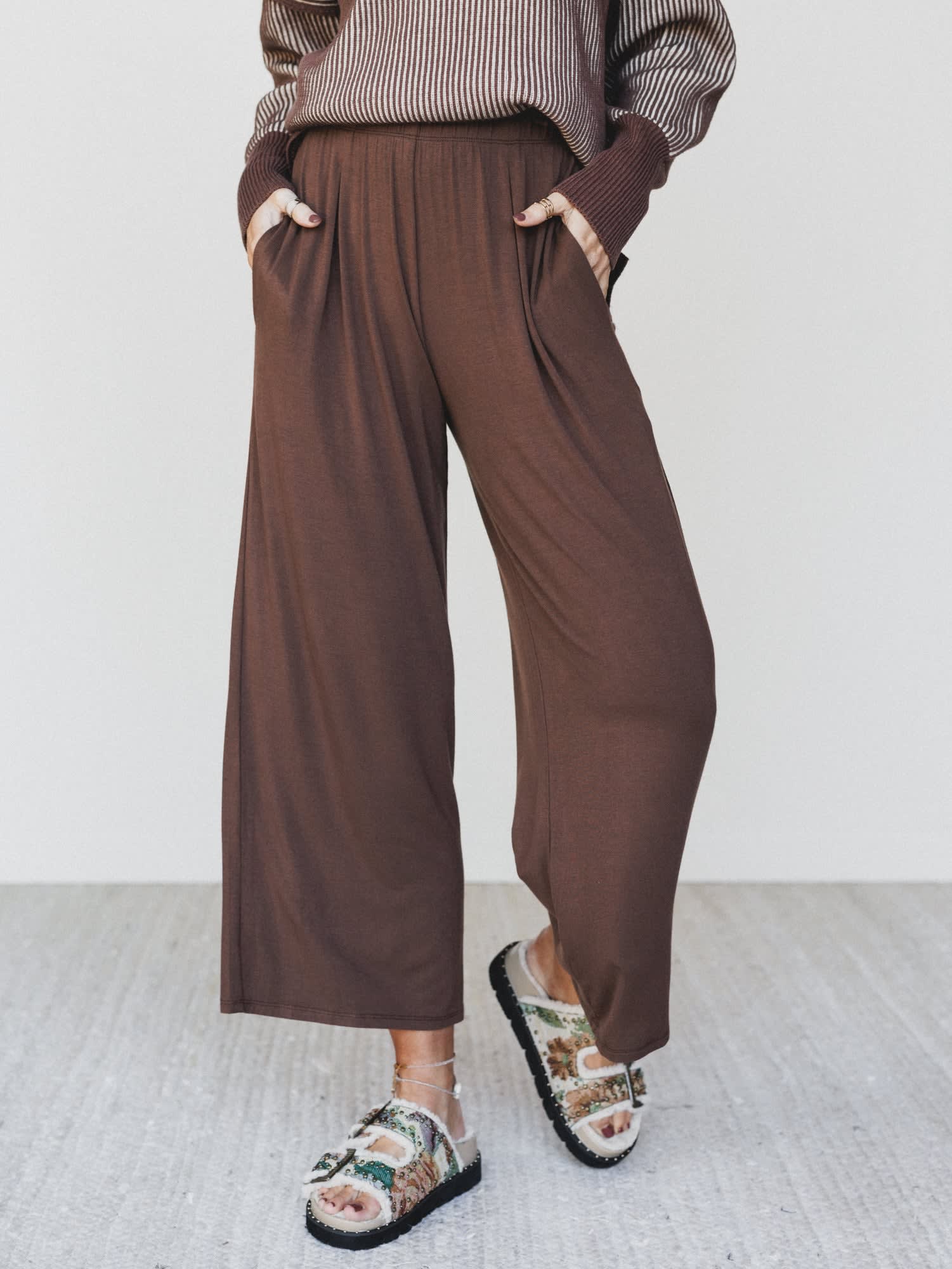Slip into ease with the Moonbeam Lounge Pants, your new wear-everywhere staple for slow mornings, travel days, or easy evenings in. With their fluid drape and soft touch, these wide leg pants bring effortless style to your off-duty vibe.
