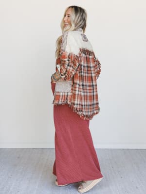 Pair it with corduroy bottoms, denim, or leggings—the Moonlit Plaid Top makes every outfit effortlessly cool with its mix of textures and timeless fall hues.