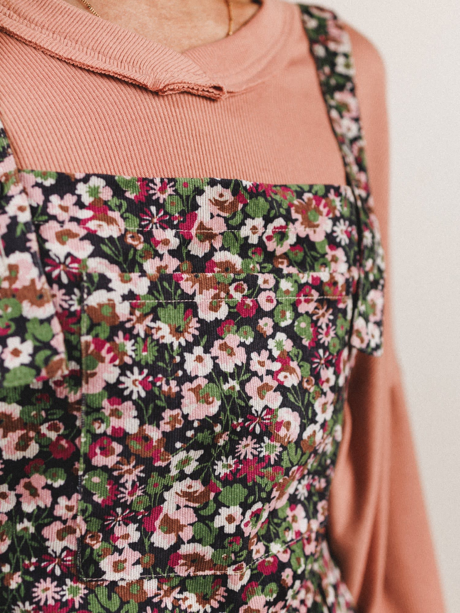 The Moonpetal Jumpsuit is your new seasonal go-to—soft, playful, and full of charm. Whether you're exploring a weekend market or headed to brunch with your girls, this floral corduroy one-piece brings cozy-cute energy to every outing.