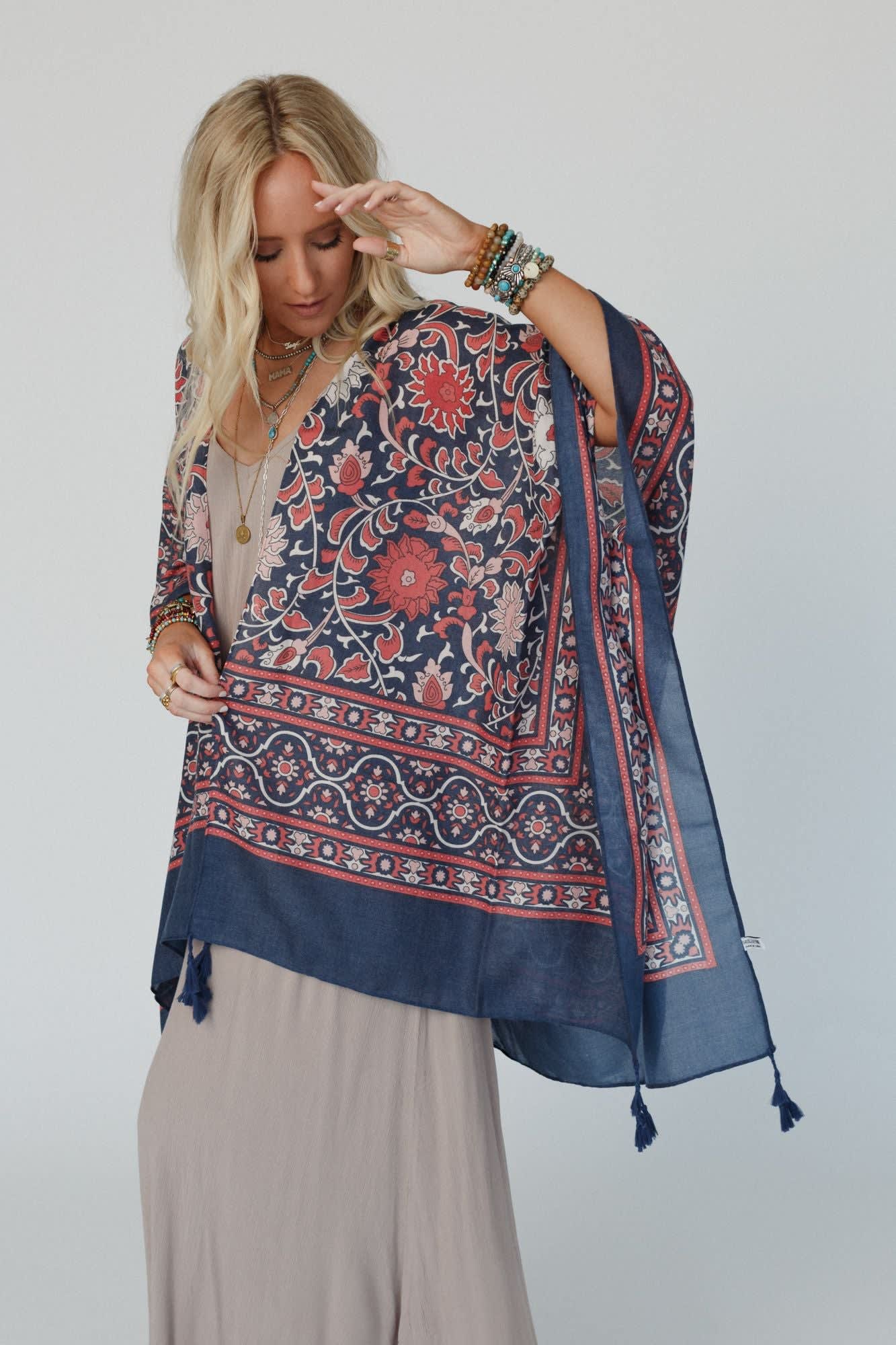 Nothing says effortless boho layering like a flowy kimono with bold detail. Whether you’re styling a maxi dress for date night or adding interest to a simple tank and denim, this statement piece is the answer to what to wear when your outfit needs a little extra.