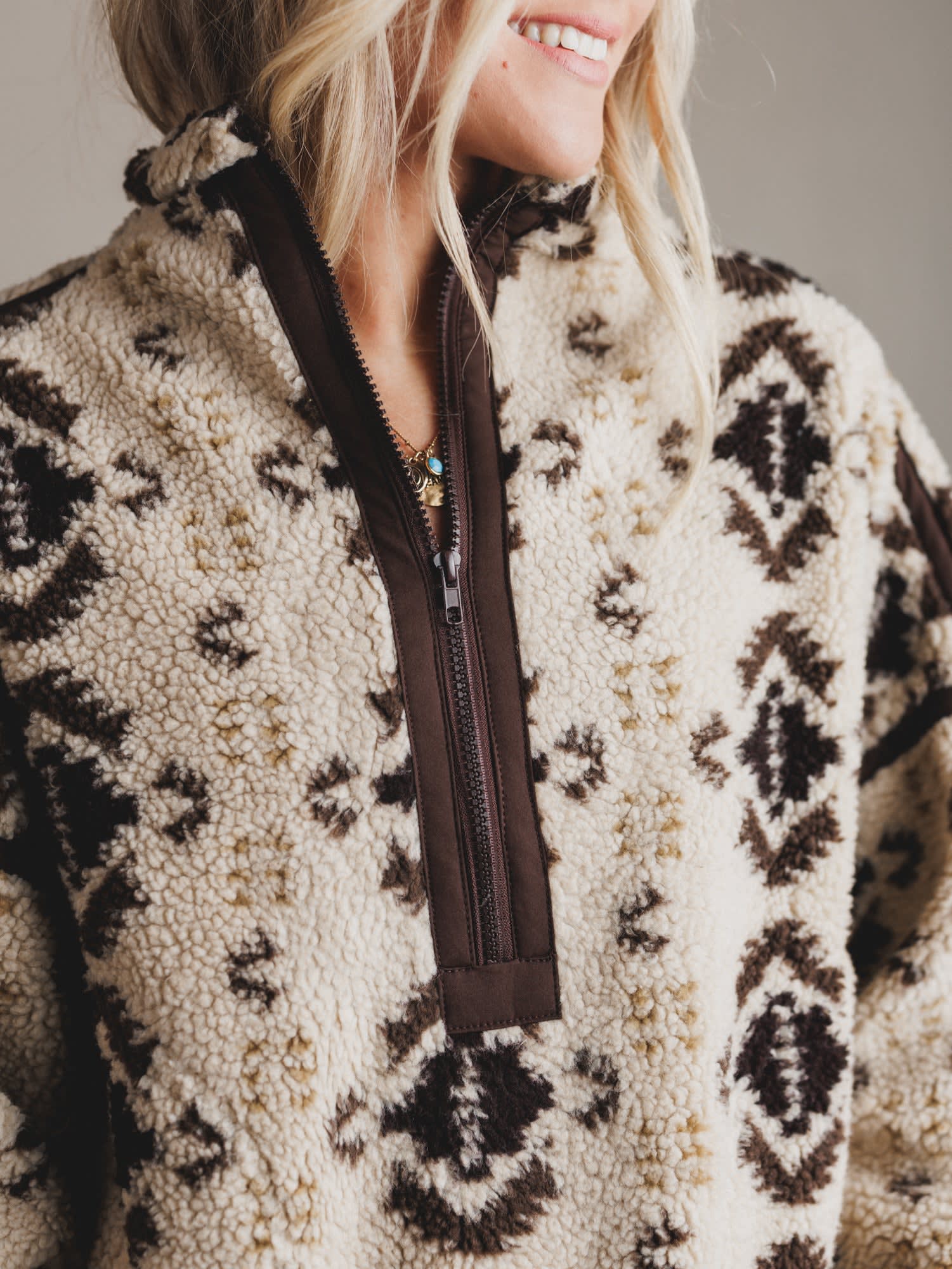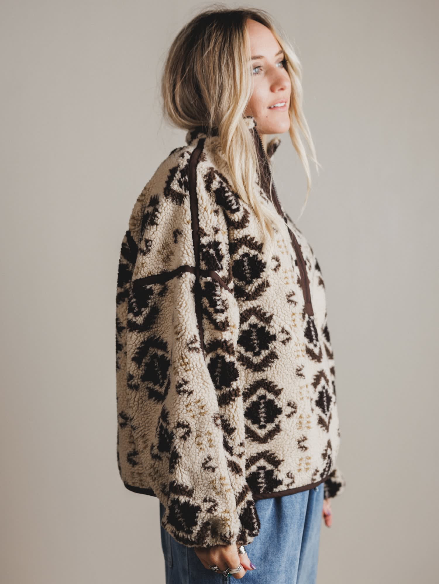 Answer the call of cozy in the Mountain Calling Pullover, your new go-to for crisp mornings and campfire nights. Wrapped in warm sherpa and finished with a vintage-inspired pattern, this piece is made for layering through every wild season.