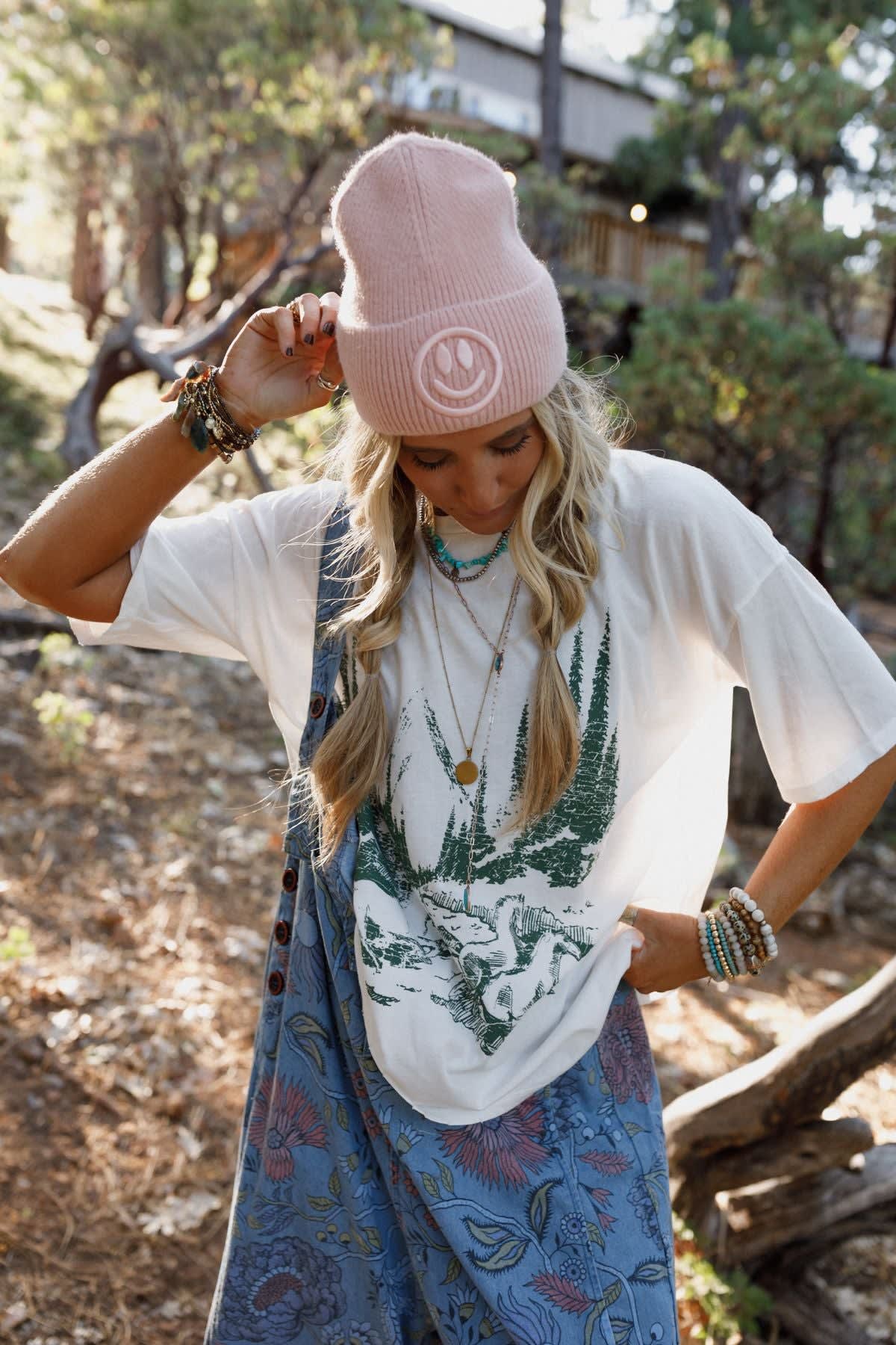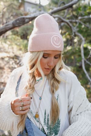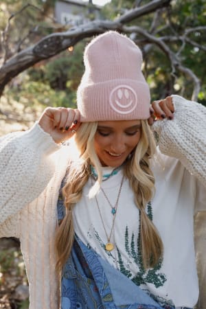 Add the perfect accessory to your closet with this statement boho piece. The Nesta Smiley Beanie brings a timeless touch to any look—not to mention all the smiles you’ll receive!