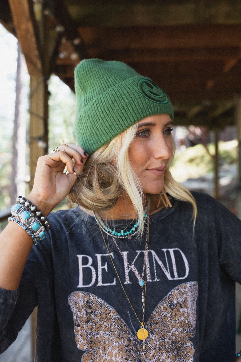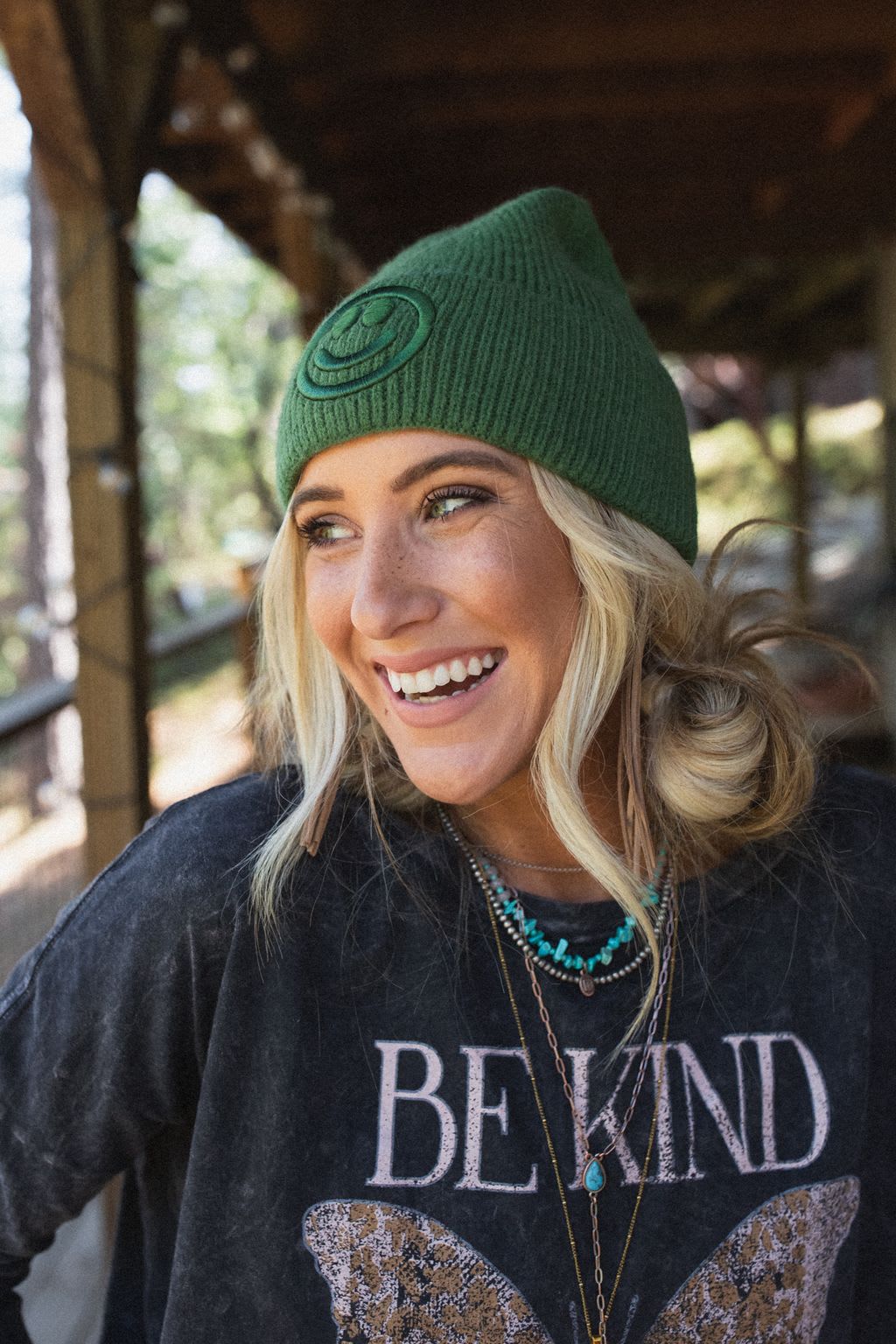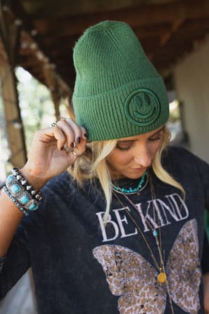 Add the perfect accessory to your closet with this statement boho piece. The Nesta Smiley Beanie brings a timeless touch to any look—not to mention all the smiles you’ll receive!