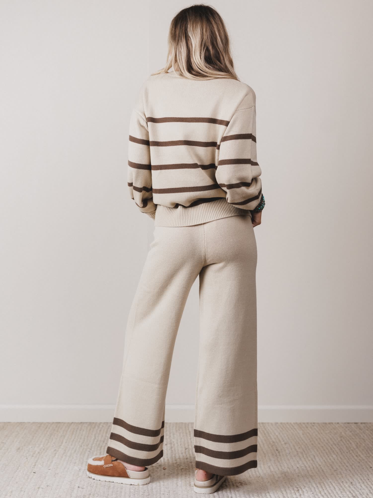 Wrapped in cozy comfort and just the right amount of retro charm, the Night In Set is made for slow mornings, lounging fireside, or curling up with a good book. With a perfectly oversized striped sweater and wide-leg knit pants, this matching set brings softness and style to your stay-at-home days—or wherever your chill takes you.