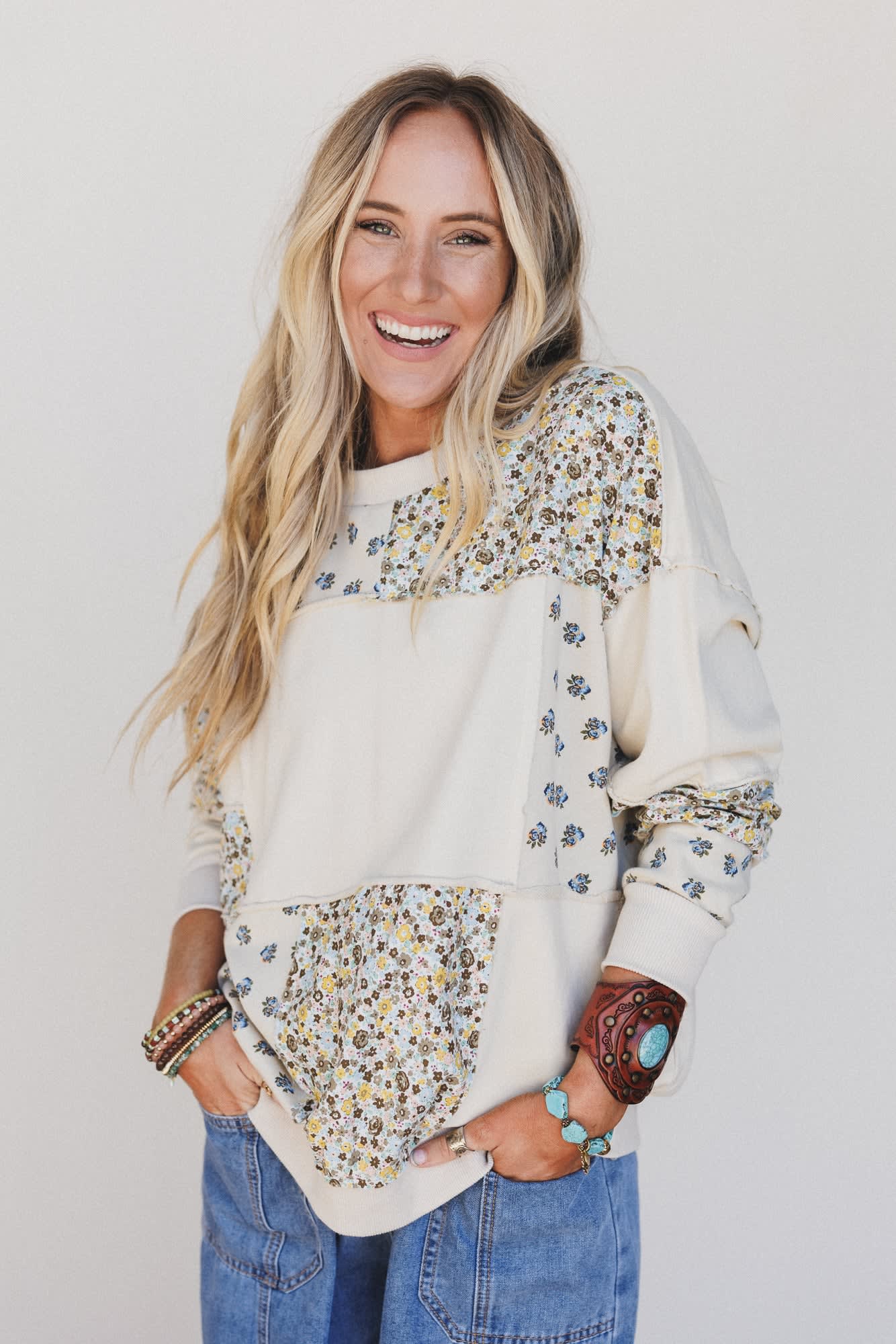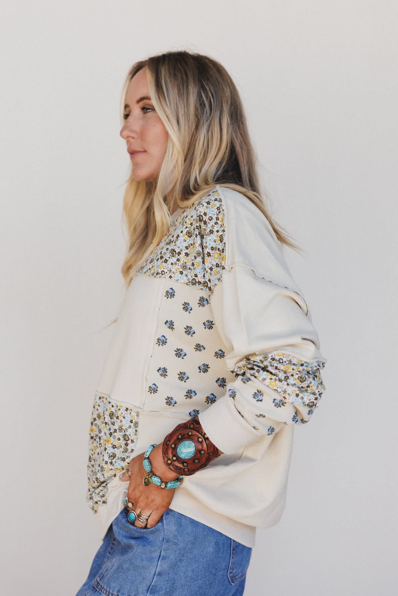 This floral mix-print top feels like a piece collected from faraway markets. A relaxed fit and soft fabric make it an instant everyday favorite.