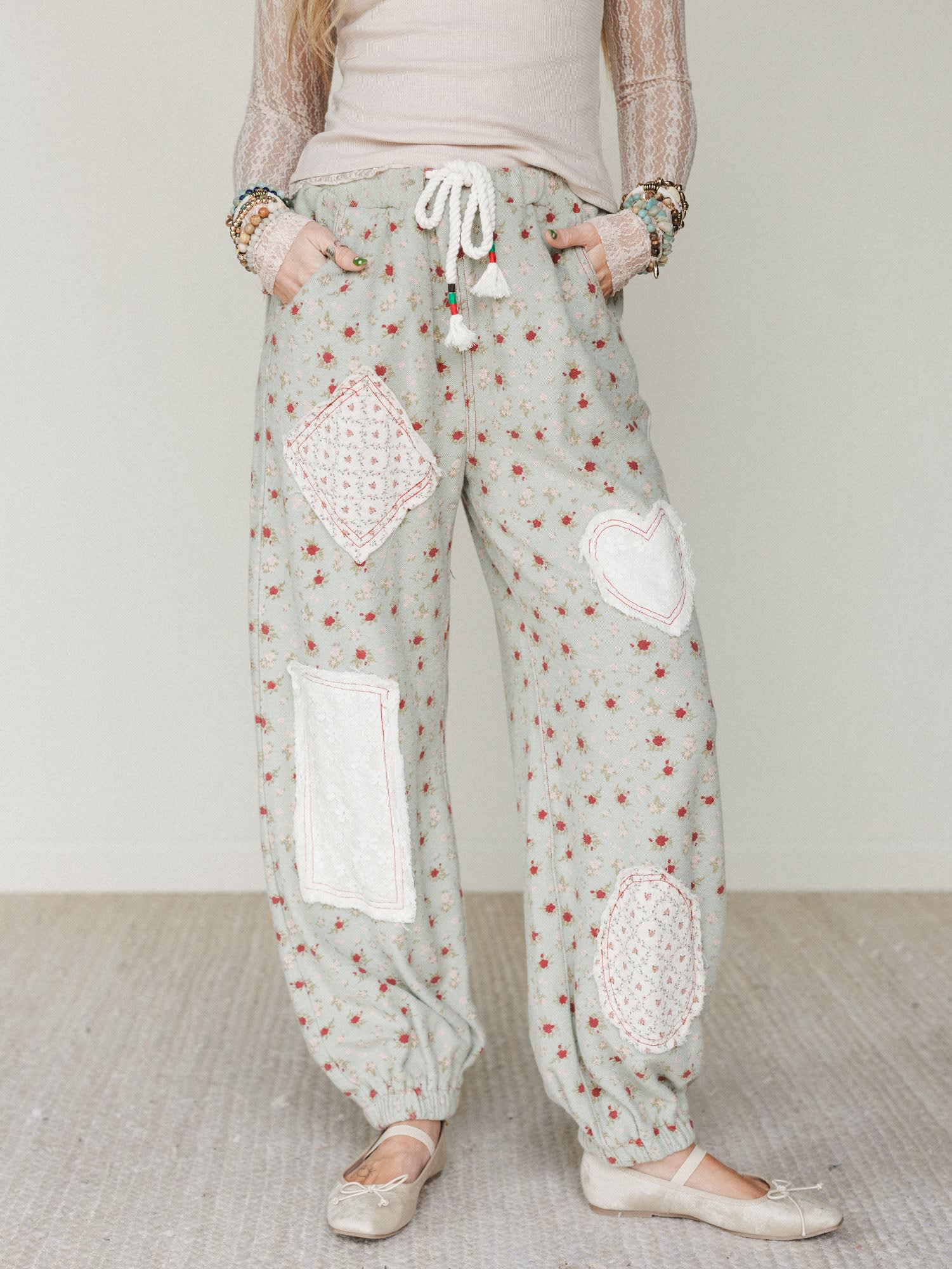 If you’re searching for what to wear on a cozy road trip or putting together the perfect laid-back boho outfit, these charming patchwork pants are an easy yes. With soft floral fabric and sweet vintage-inspired patch details, they bring comfort and personality to any casual day.
