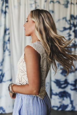 This lace crochet top looks amazing with dark denim and cowboy boots for a coastal country look.