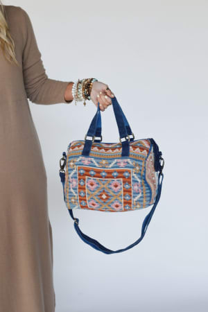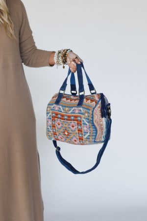 Getting away for the weekend? No bohemian fashion look on the go is complete without the Ocean Island tribal print duffle bag.
