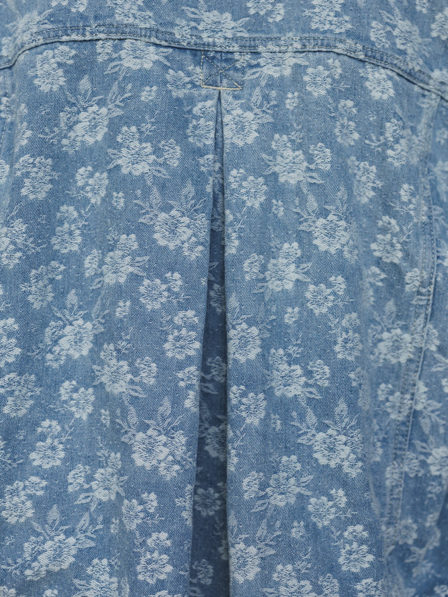 • Medium-wash denim with allover subtle floral print