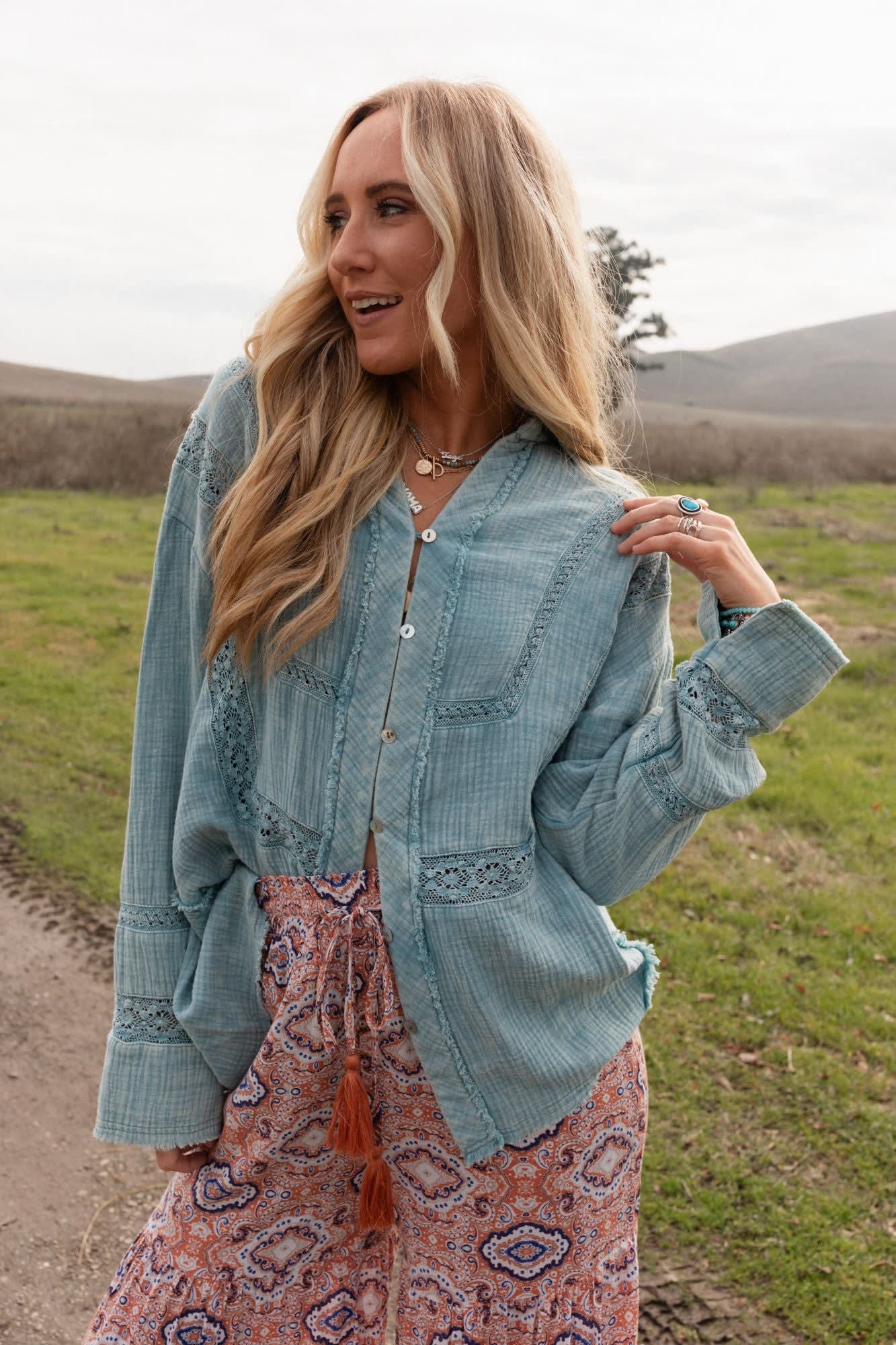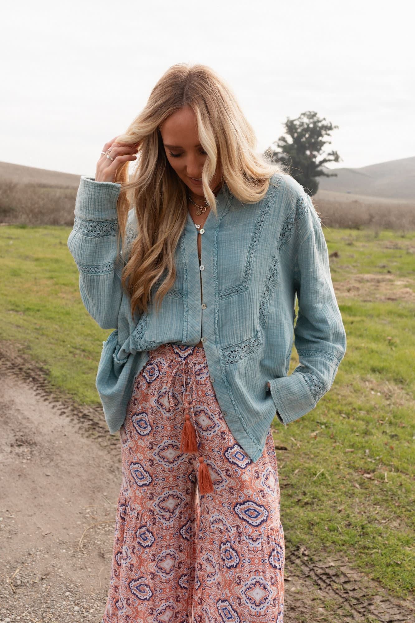 We found your new go-to blouse, the One In A Million Button Down Top, it can easily be dressed up or down while maintaining the comfort and boho style you love!