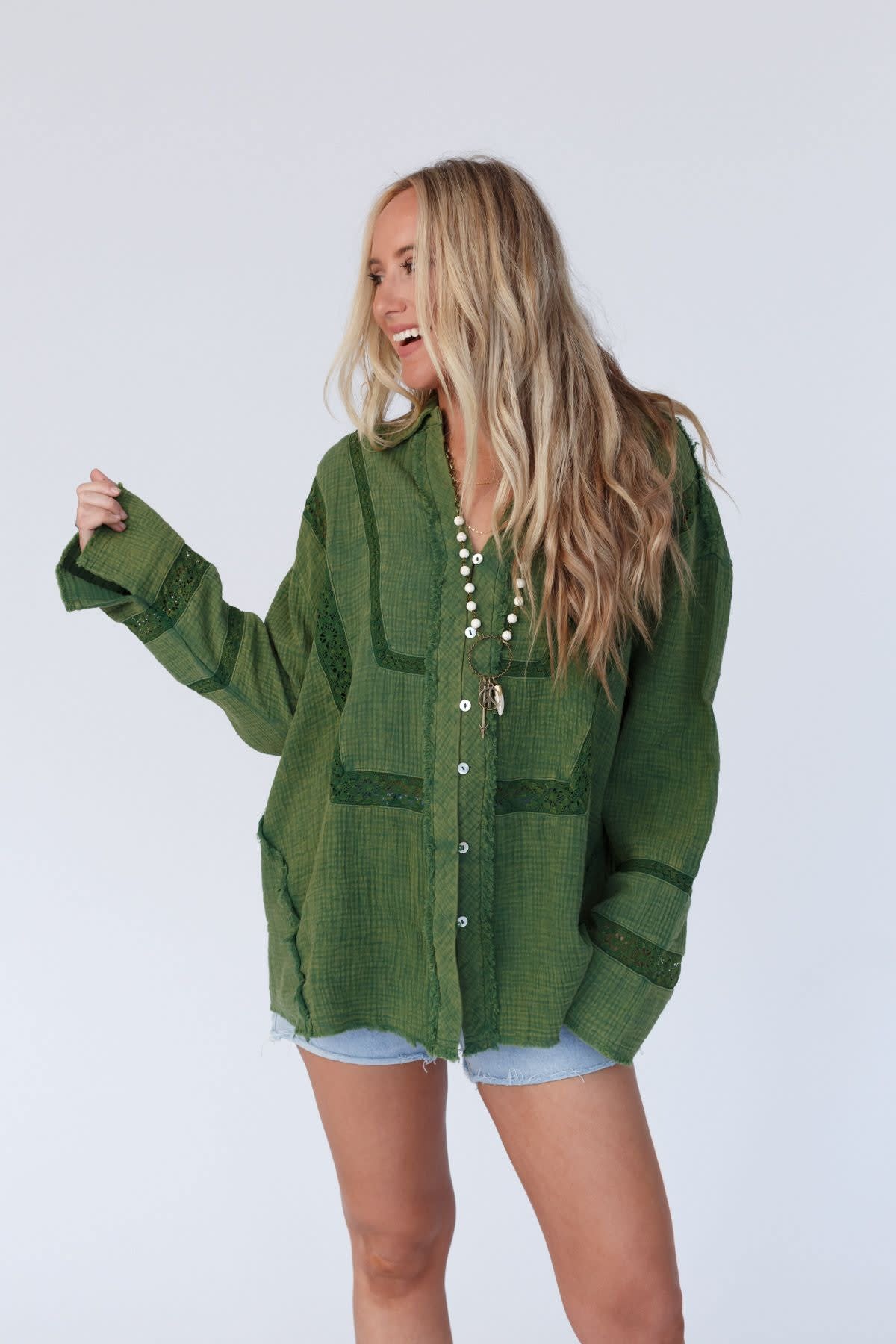 We found your new go-to blouse, the One In A Million Button Down Top, it can easily be dressed up or down while maintaining the comfort and boho style you love!