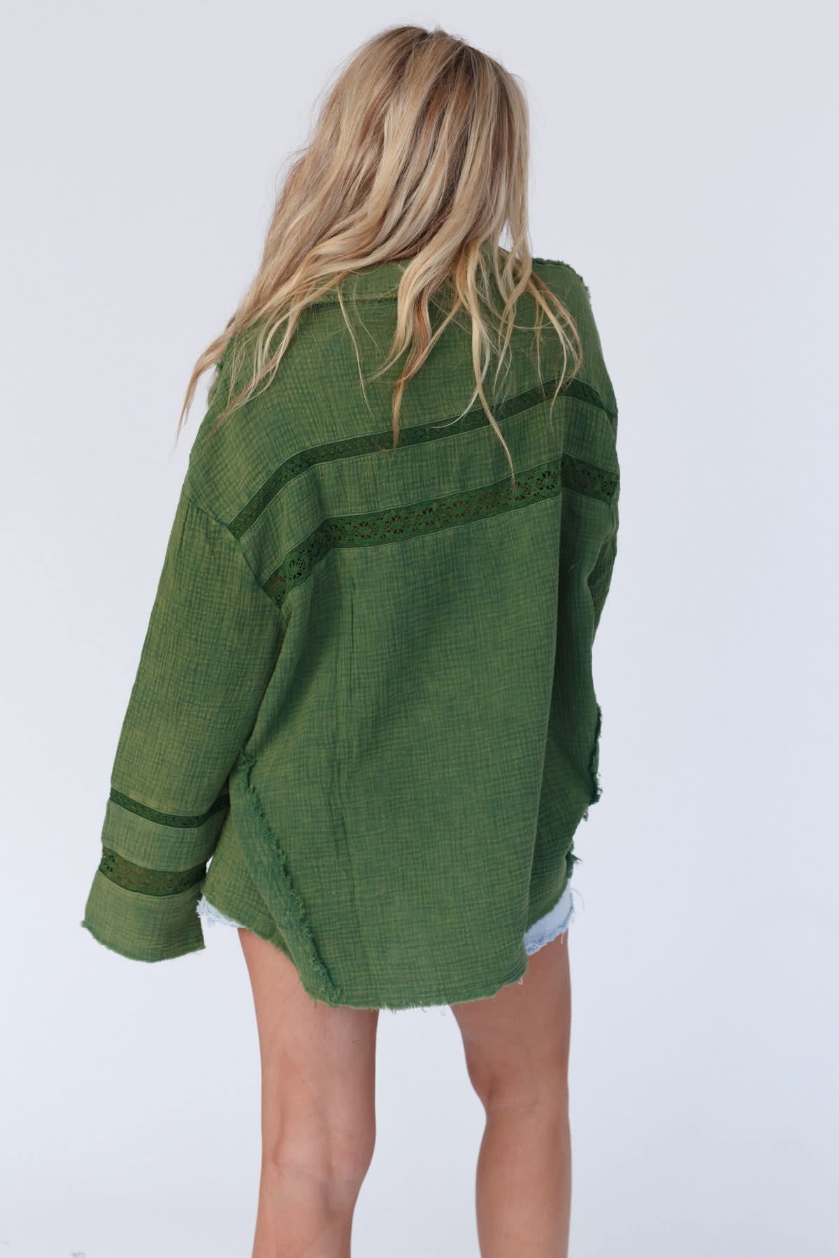 • Exposed seams with raw edges throughout for added boho style