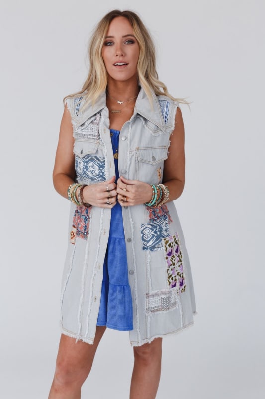 The One Of A Kind Sleeveless Denim Dress Vest gets its name for a reason - it truly is so unique, you'll feel like the one of a kind that you are!
