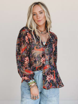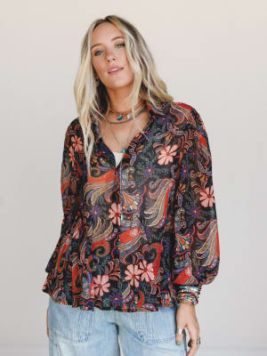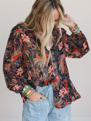 A blouse that’s anything but basic. The Paisley Please Top brings vintage inspiration with a modern twist—perfect for when your outfit needs a pop of color and character.