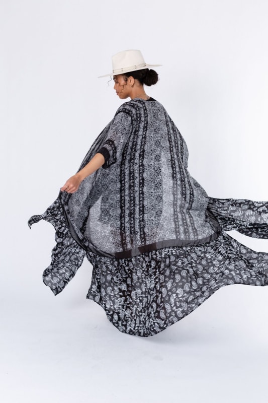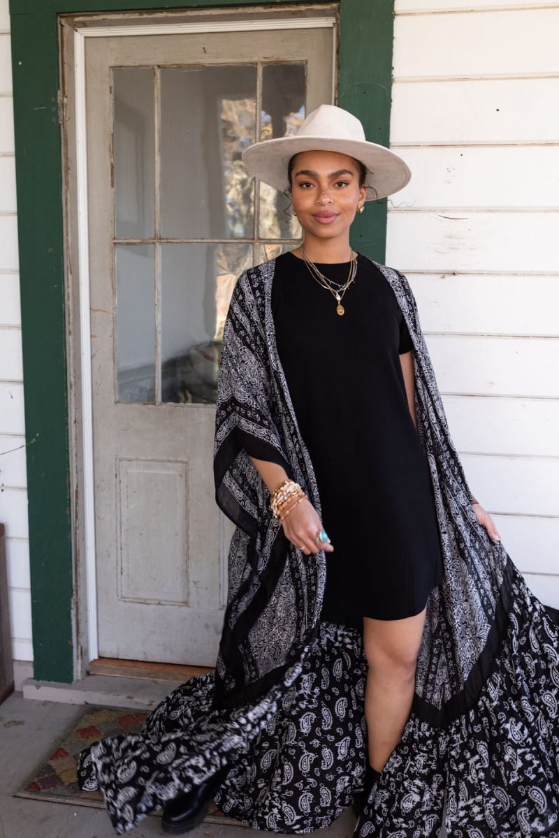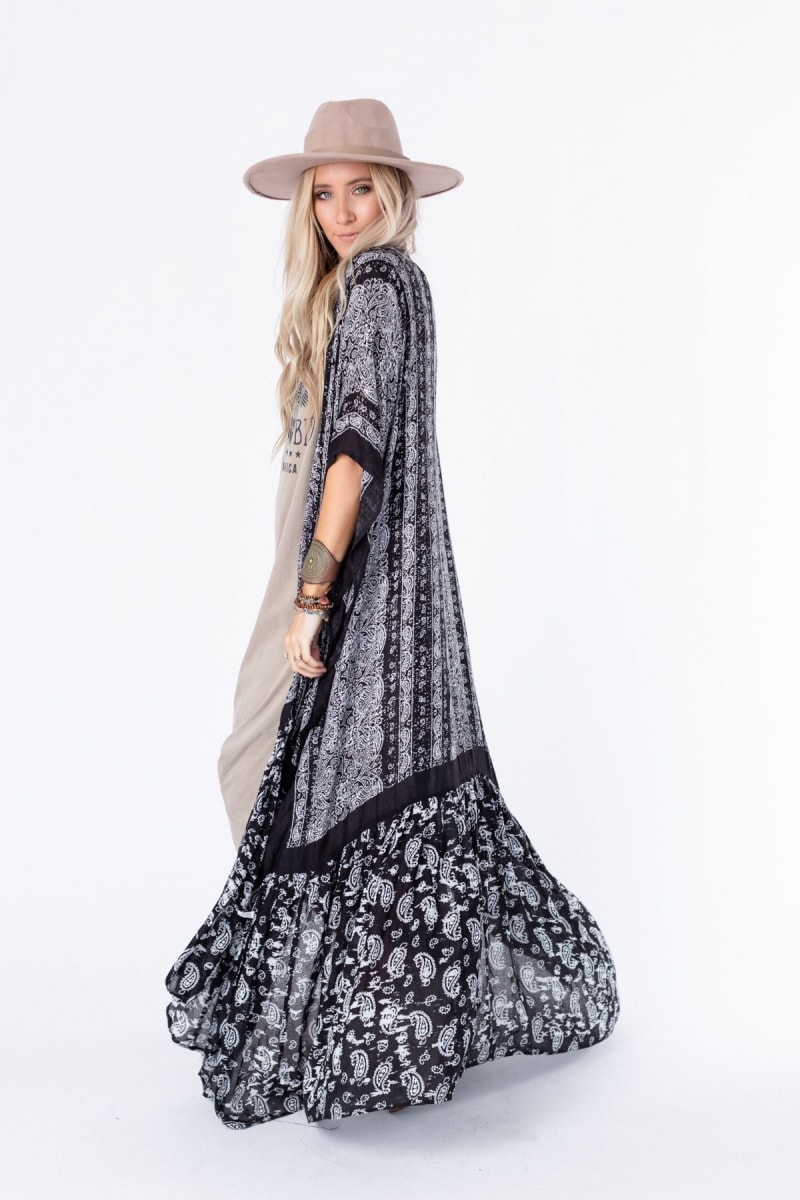 The Paisley Tapestry Duster Kimono is the ultimate finishing touch for any look! The duster features a mix of mandala-inspired and paisley print with an open silhouette, kimono sleeves, and a ruffled bottom hem. It's comfortable, boho, and effortless - an essential piece for any boho girl's wardrobe!