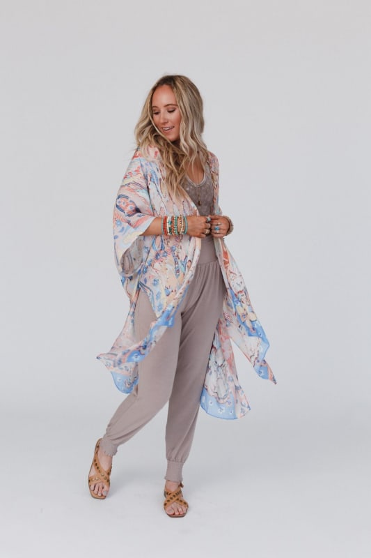 The Paisley Tapestry Duster Kimono is the ultimate finishing touch for any look! The duster features a mix of mandala-inspired and paisley print with an open silhouette, kimono sleeves, and a ruffled bottom hem. It's comfortable, boho, and effortless - an essential piece for any boho girl's wardrobe!