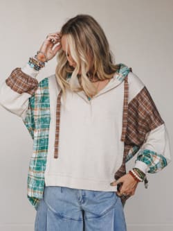Where laid-back comfort meets patchwork charm. The Palm Point Top mixes classic flannel with cozy sweatshirt vibes—making it the perfect lightweight layer for crisp mornings and spontaneous adventures.