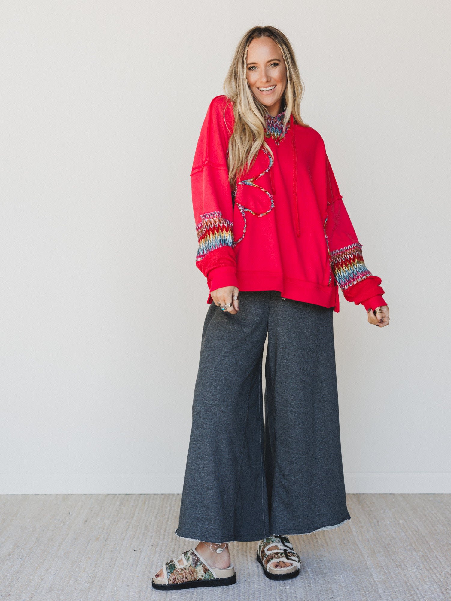 Bright, bold, and made for slow mornings with big dreams. The Patchwork Poppy Bundle brings major personality to your cozy days with a statement hoodie and lounge-ready pants that don’t skimp on charm.