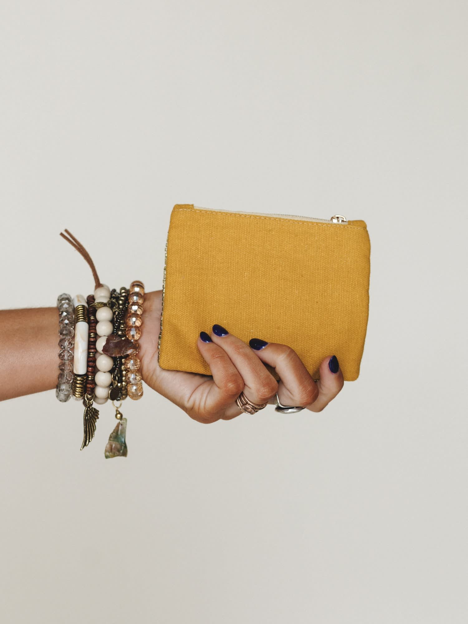 • Secure zip closure to stash coins, cards, or small essentials