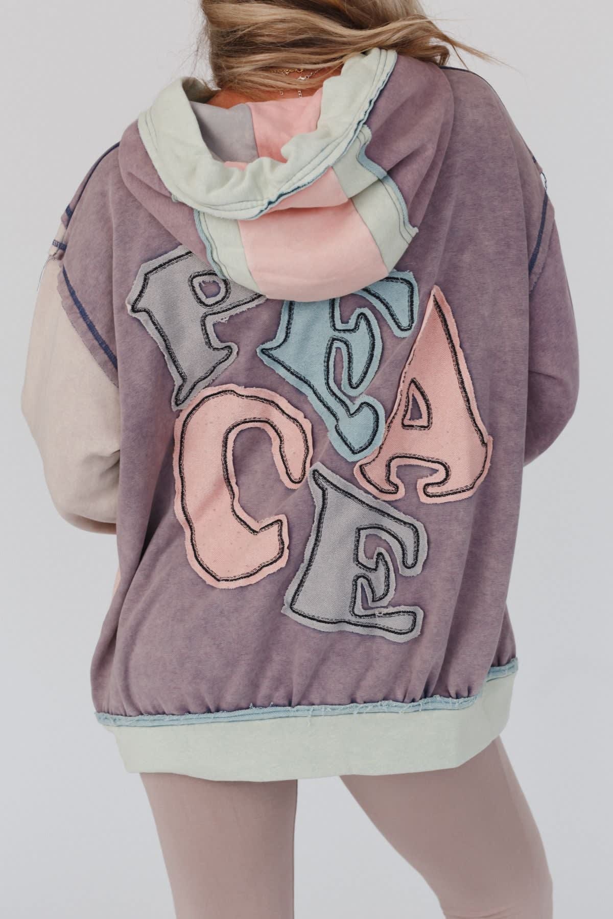 • So unique letter patchwork design that reads “PEACE” along the back