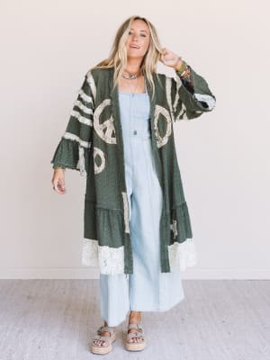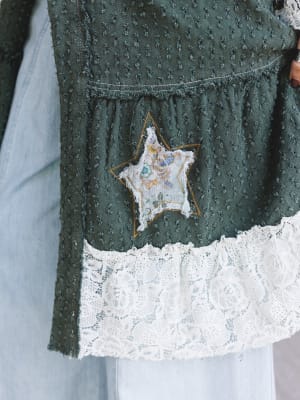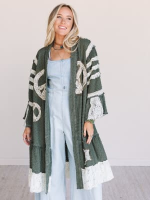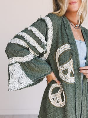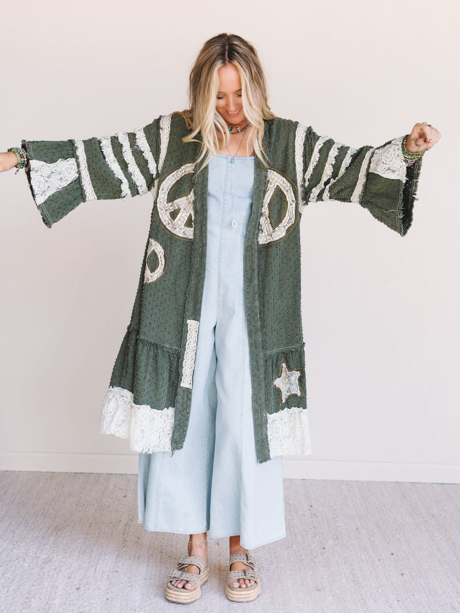 Make a bold, boho statement with the Peace Run Jacket — a patchwork dream of lace, texture, and feel-good vibes. This olive green showstopper is all about love, light, and letting your spirit shine.