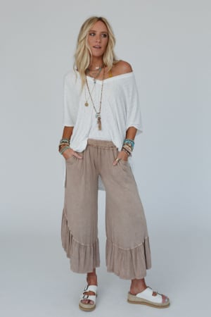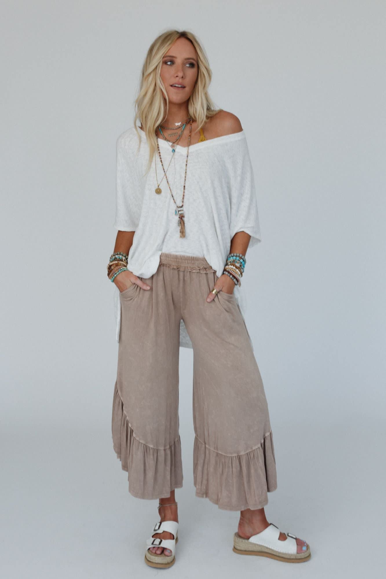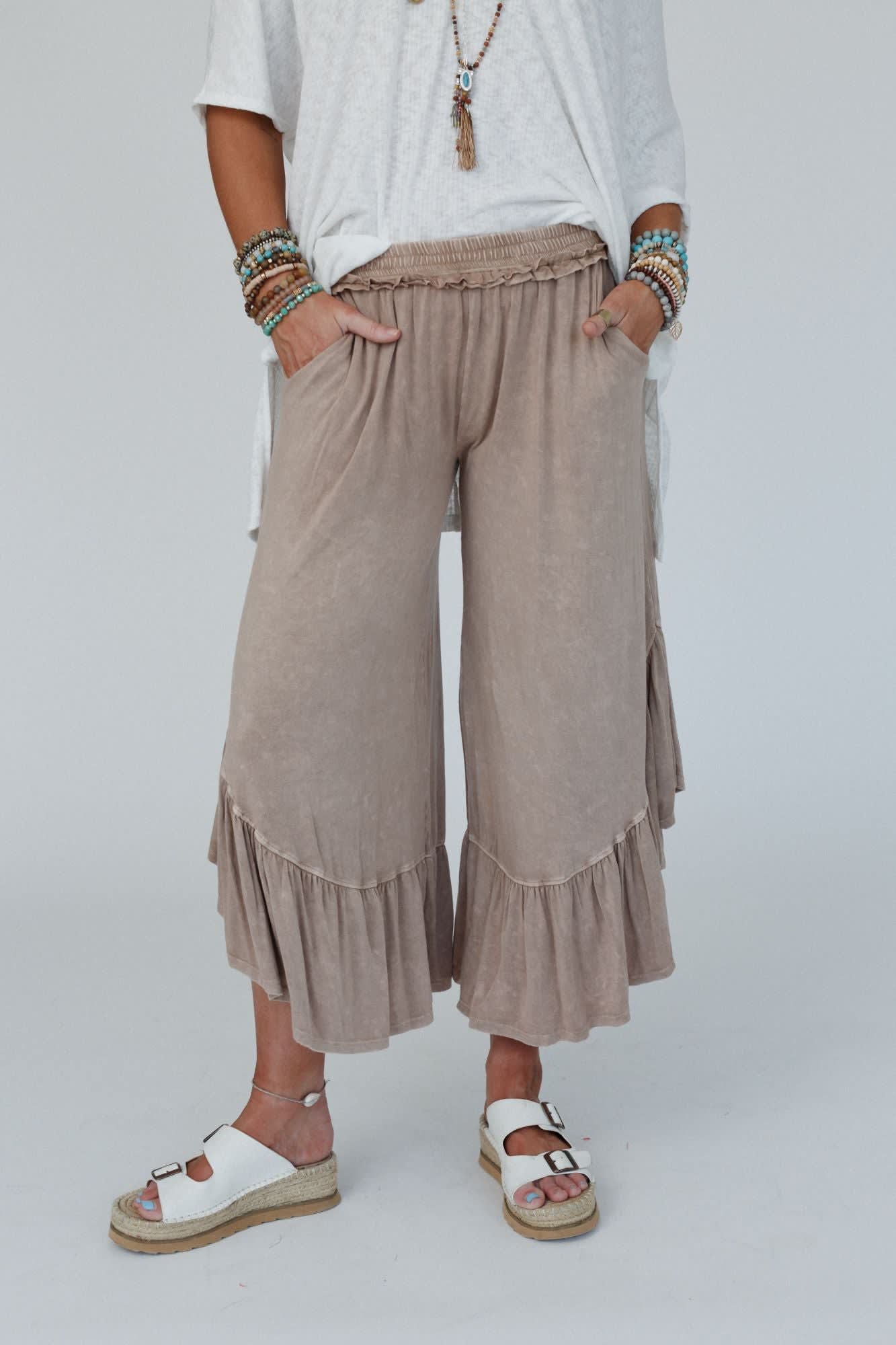A must-have boho statement both comfy and cute is the Pebble Shore Ruffle Pants - perfect for casual or dressy and effortlessly cool, you'll get so many compliments and feel your best in these pants!