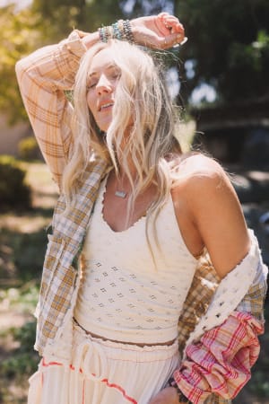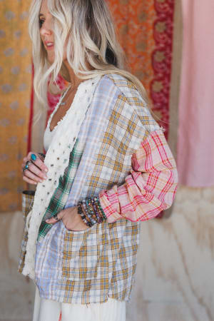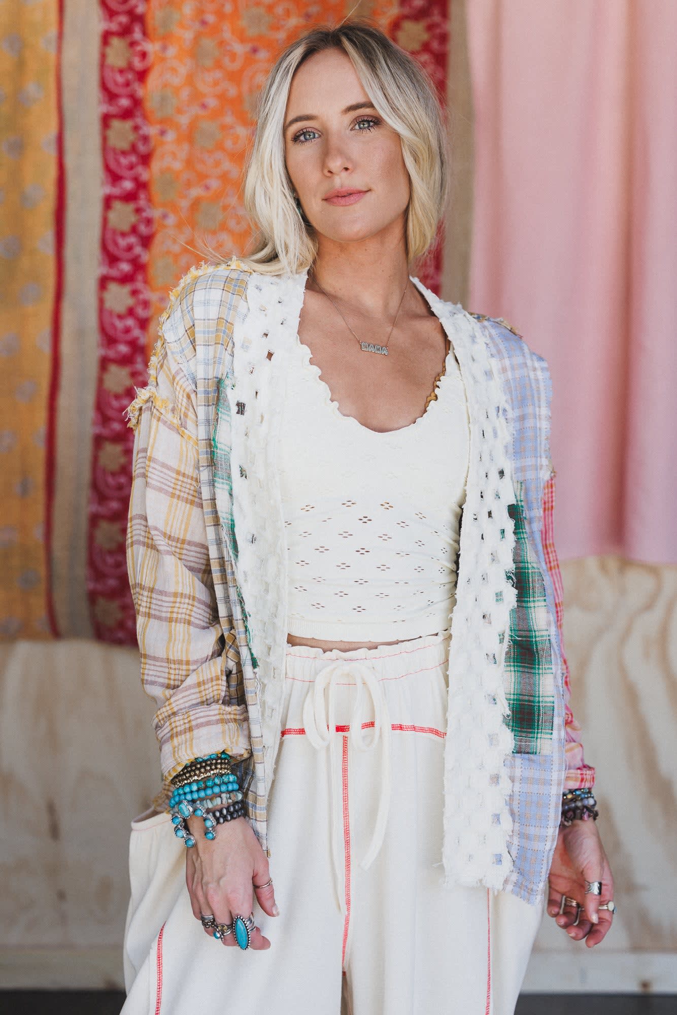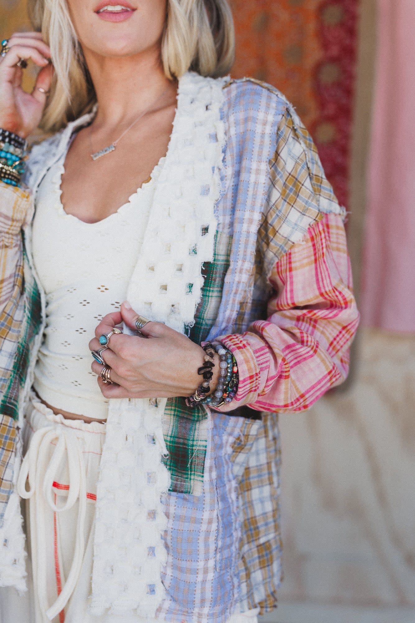 This lace and plaid jacket is the ultimate light layer you need for sudden summer breezes.