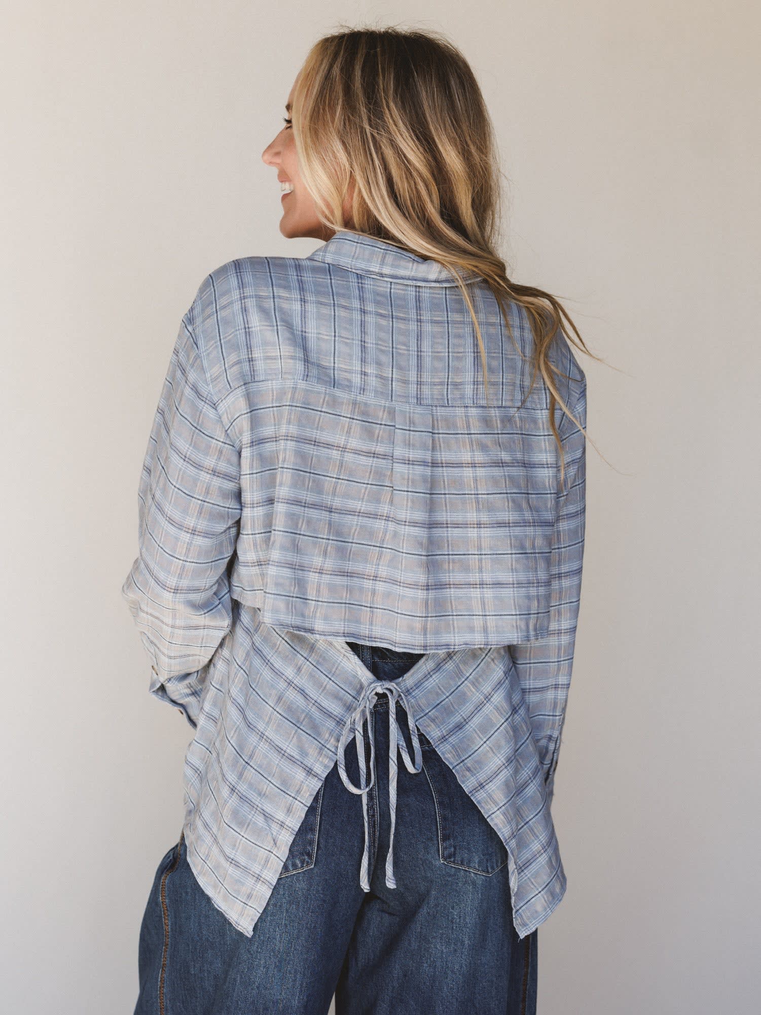 • Soft blue and grey plaid for an easy, everyday look