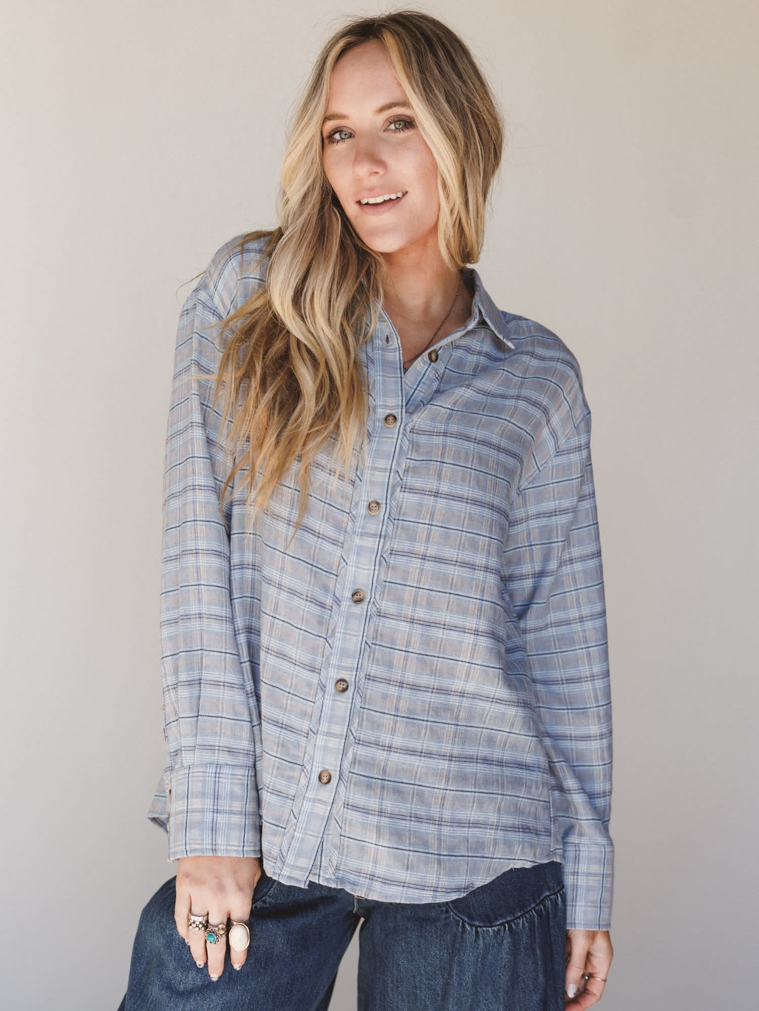 A modern take on a classic plaid, the Perfectly Prairie Blouse blends timeless style with a unique, eye-catching twist. Light, breezy, and effortlessly stylish, it’s the kind of piece that adds personality to any casual outfit.