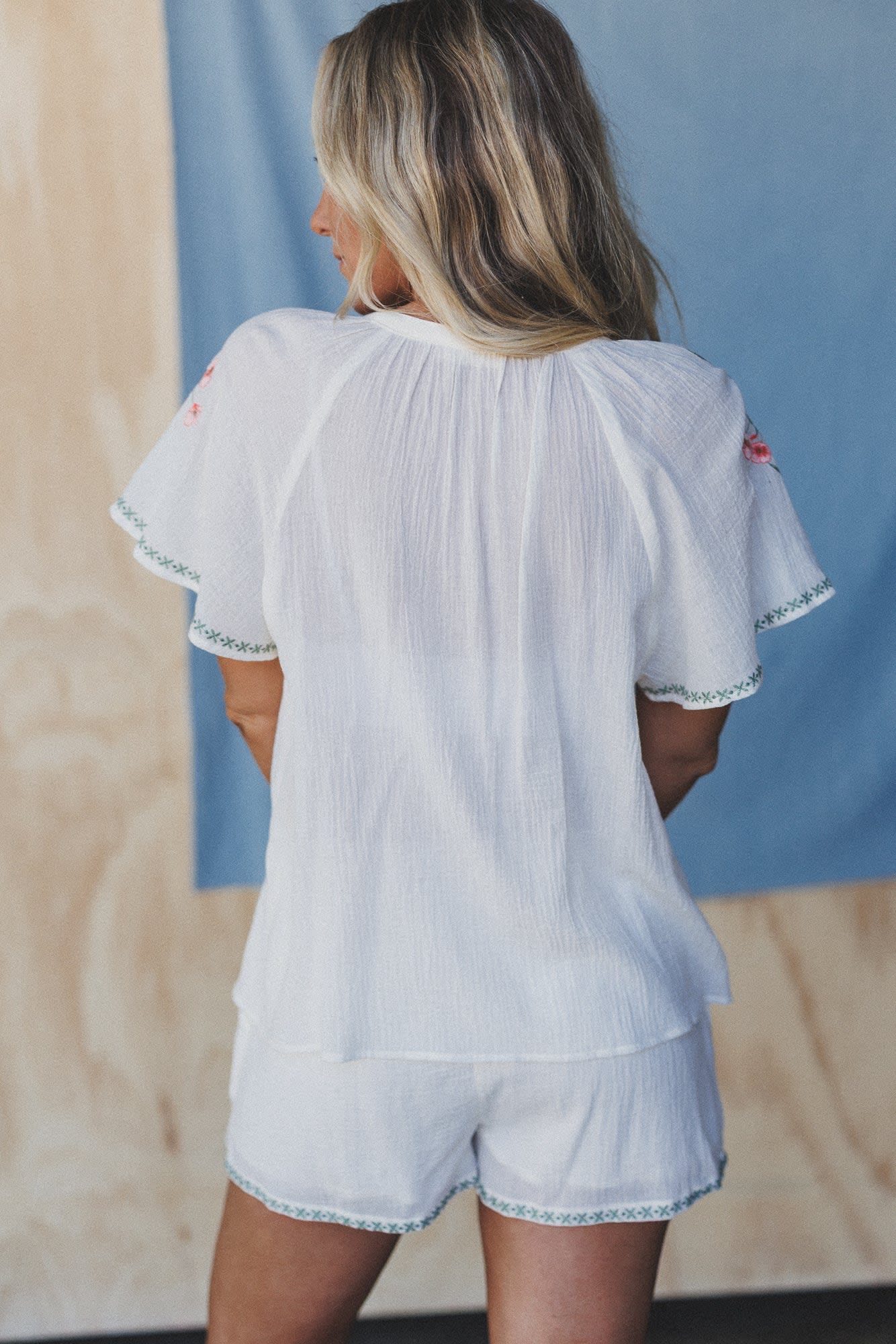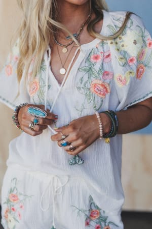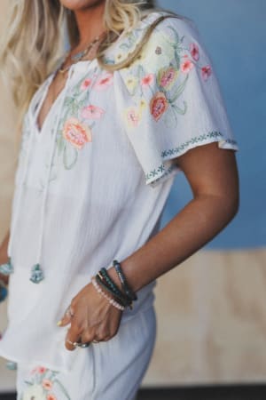 This laid back v-neck top looks amazing tucked into a maxi skirt or with lightwash jeans.