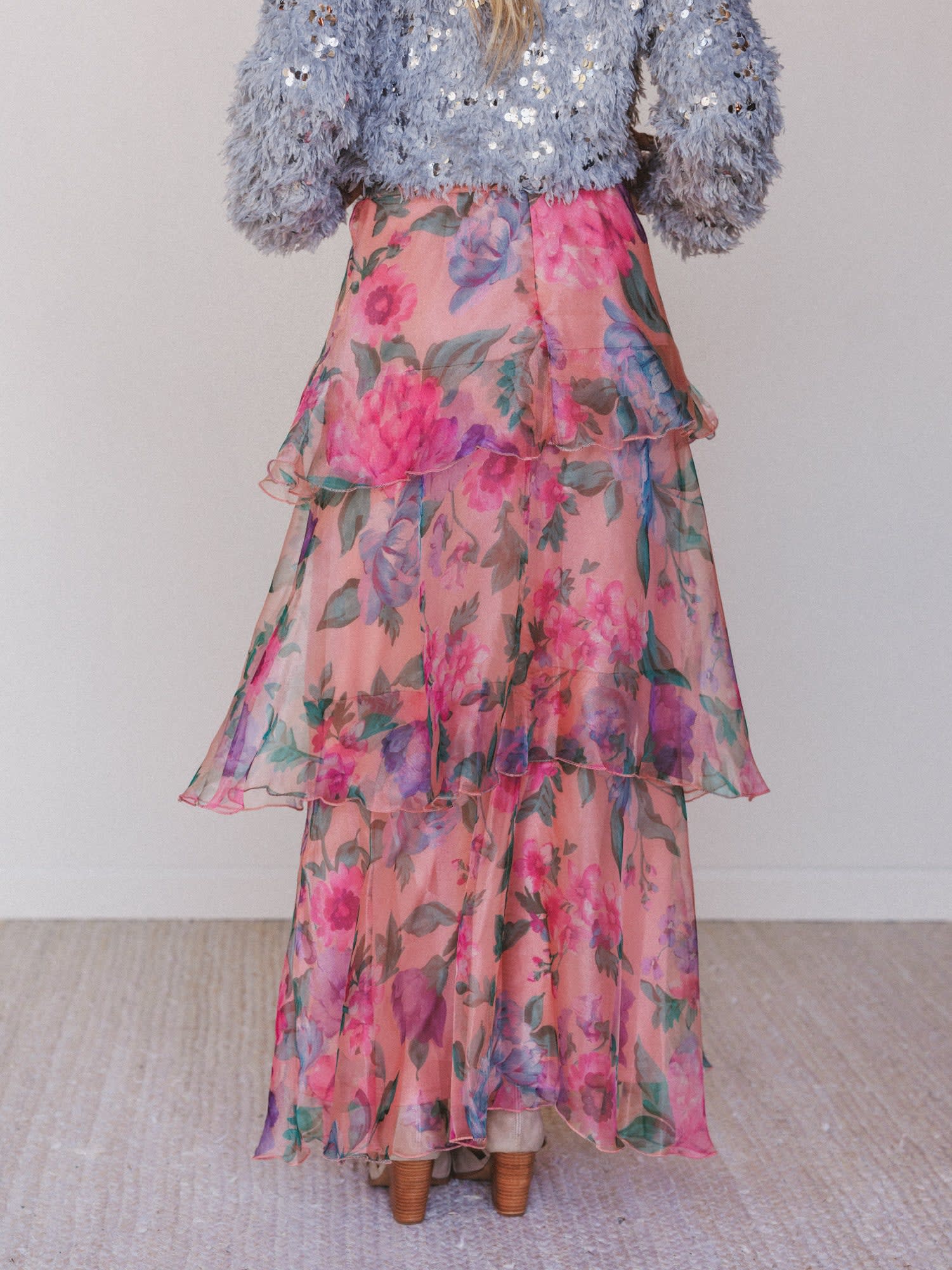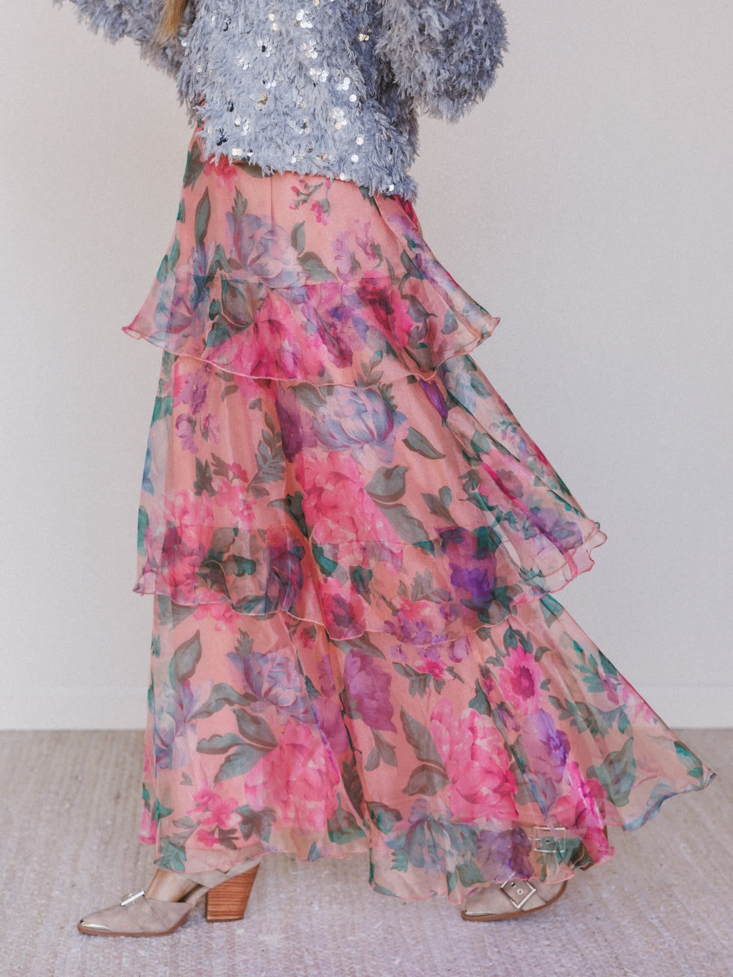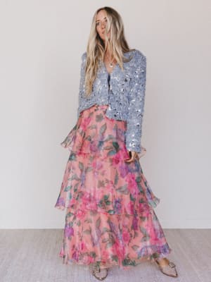 Soft, romantic, and full of movement—the Petal Notes Maxi Skirt is everything we love about dreamy boho style. Featuring cascading ruffles and a bold floral print, this tiered beauty was made to twirl. Whether you’re headed to a garden party, beachside dinner, or simply want to feel a little extra while running errands, this skirt brings all the whimsy.