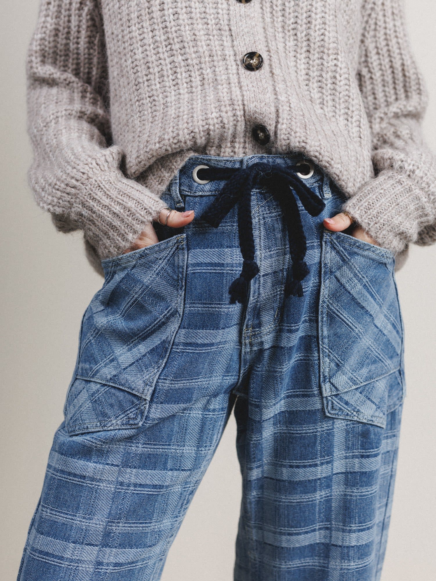 For those days when you want to make a subtle statement—meet the Pixie Party Jeans. With their dreamy patchwork plaid and comfy, slightly cropped fit, these jeans are equal parts playful and chill.