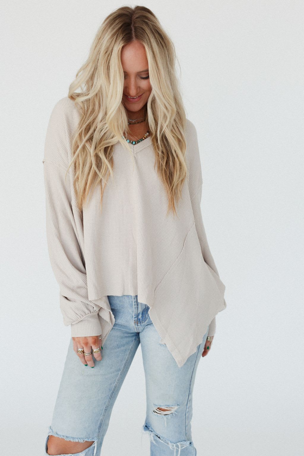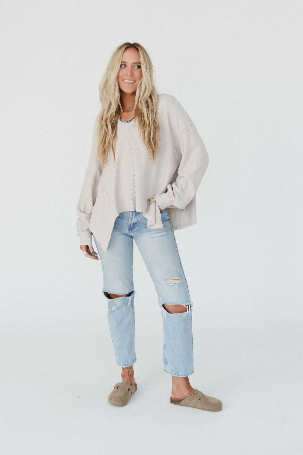 - Relaxed and loose pullover top silhouette