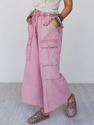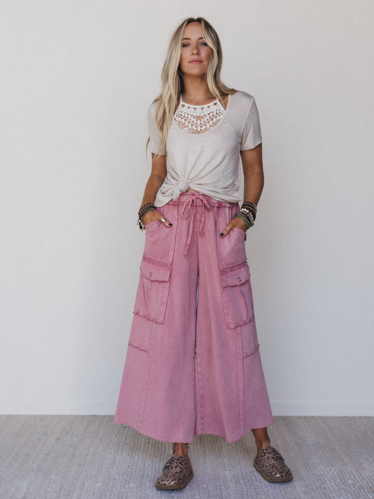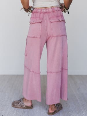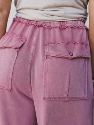• The Game On Cargo Wide Leg Pant stands out with vibrant pink pigment dye and roomy pockets for an easy, off-duty vibe