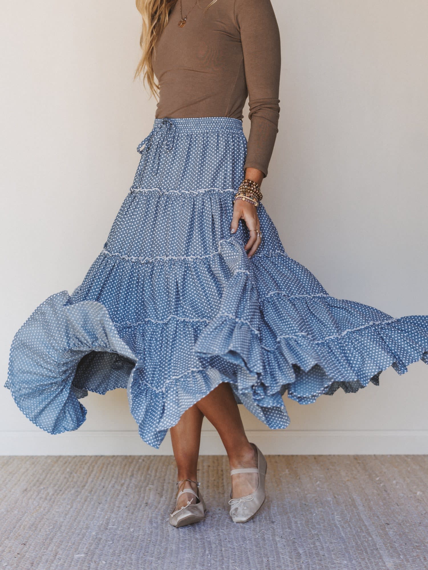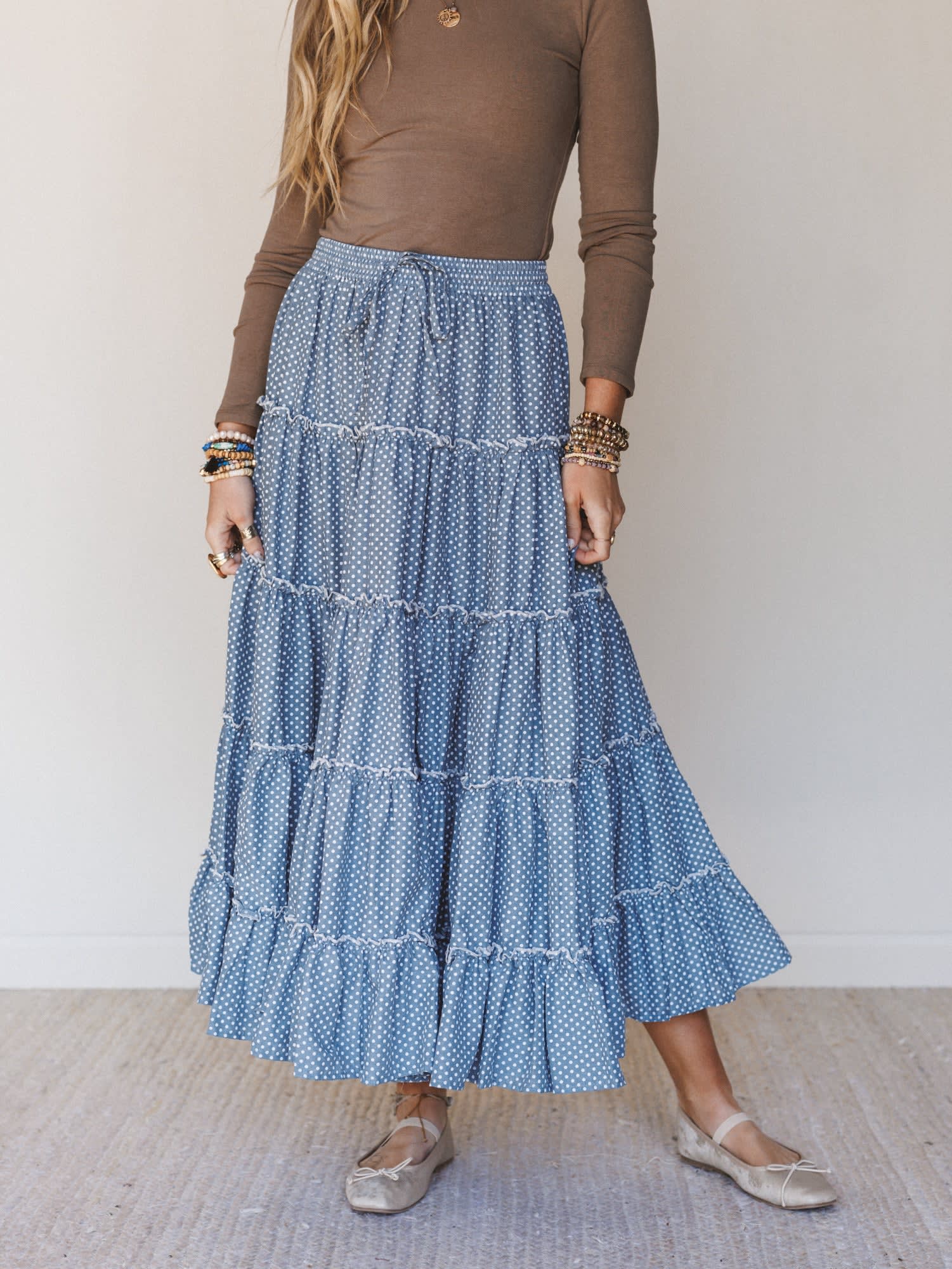 Flirty, flowy, and full of charm—the Polka Dot Darling Maxi Skirt brings a playful touch to your everyday style. With its breezy silhouette and timeless polka dot print, it’s the perfect piece for effortless, feminine outfits.