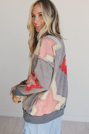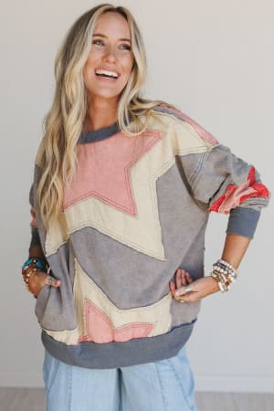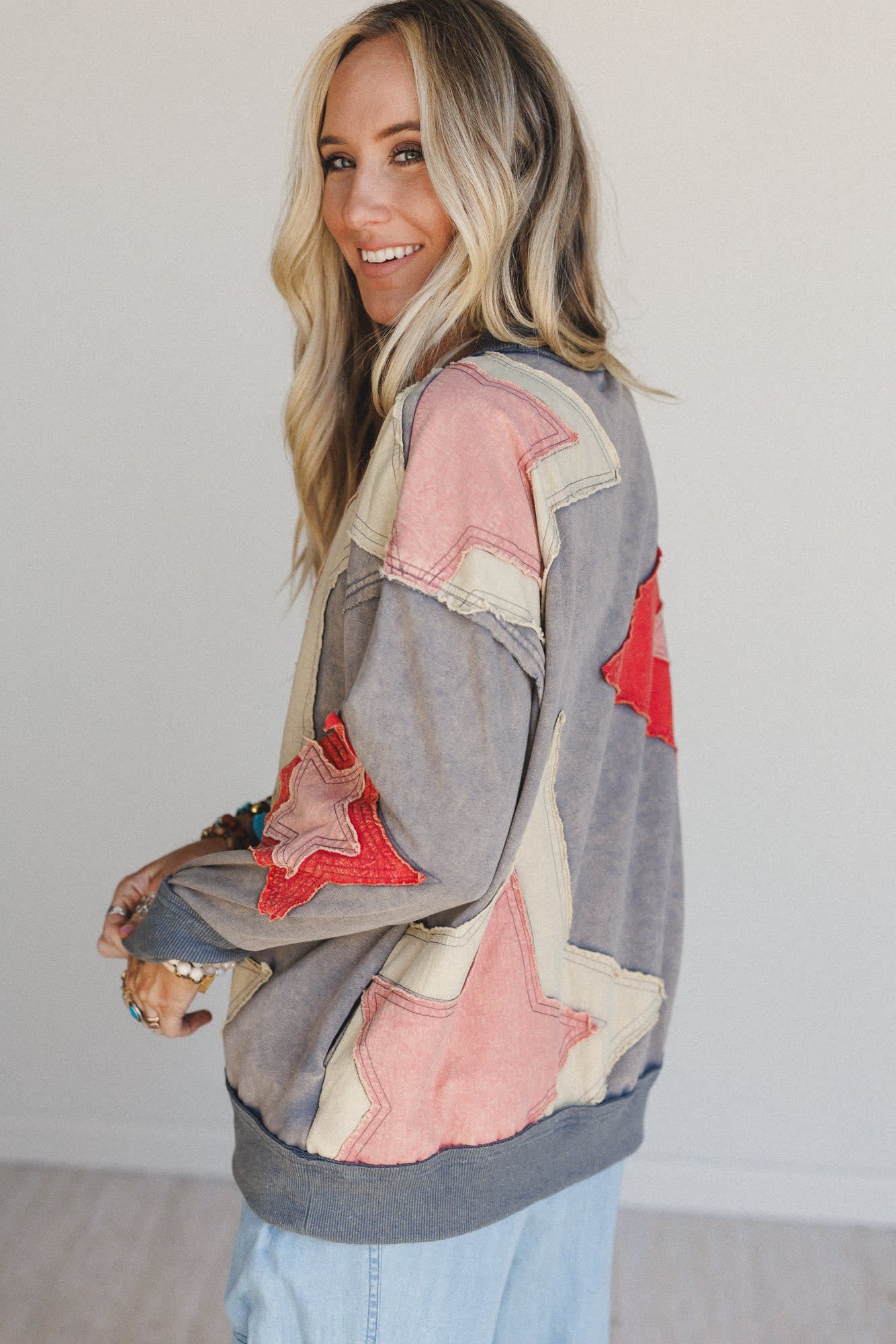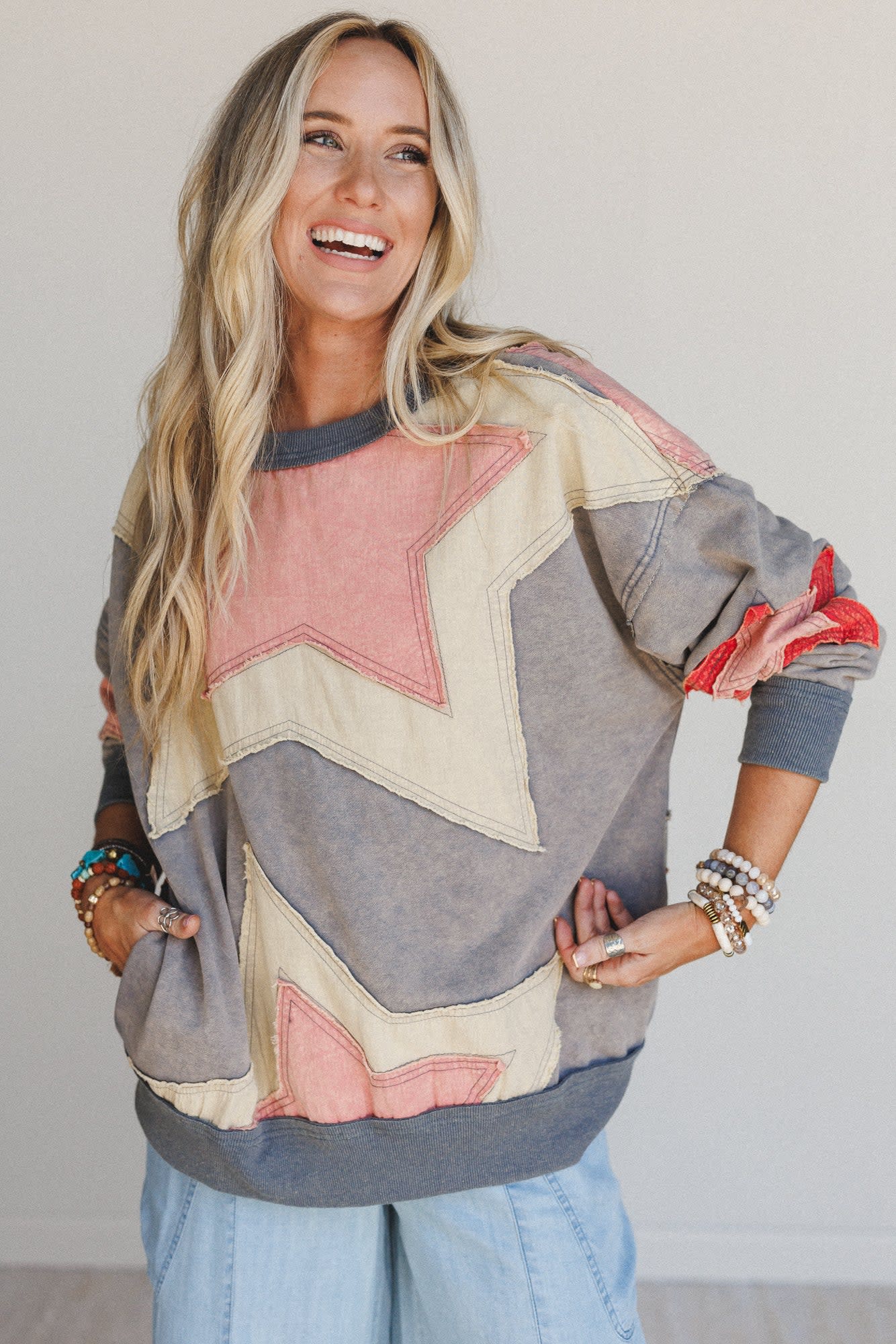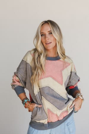 Bold, cozy, and full of personality—just like you. The Pop Star Patchwork Top brings major retro energy with oversized star appliqués and a comfy vintage wash that feels like it’s been yours forever.