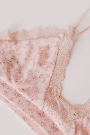 This floral bralette looks amazing with scoop neck tops and deep V maxi dresses.Β