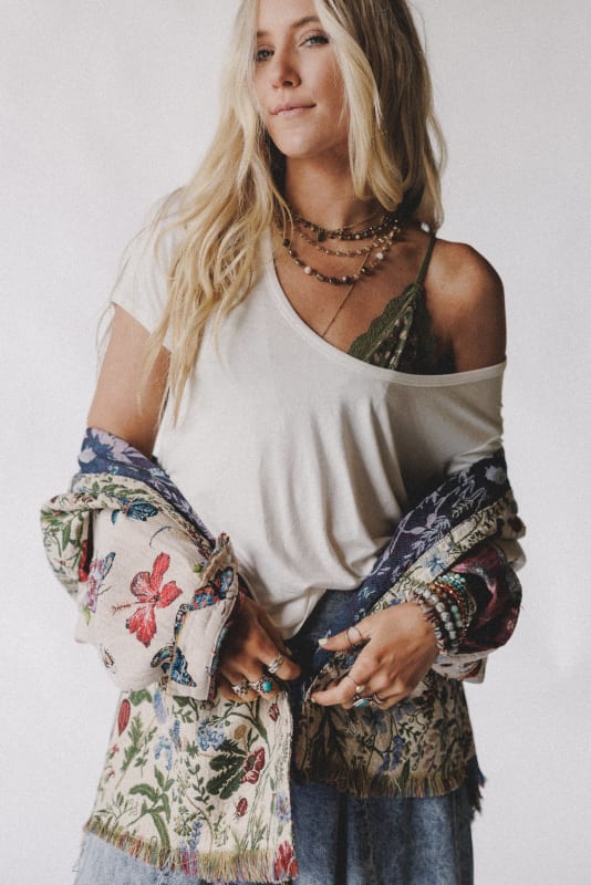 This floral bralette looks amazing with scoop neck tops and deep V maxi dresses.