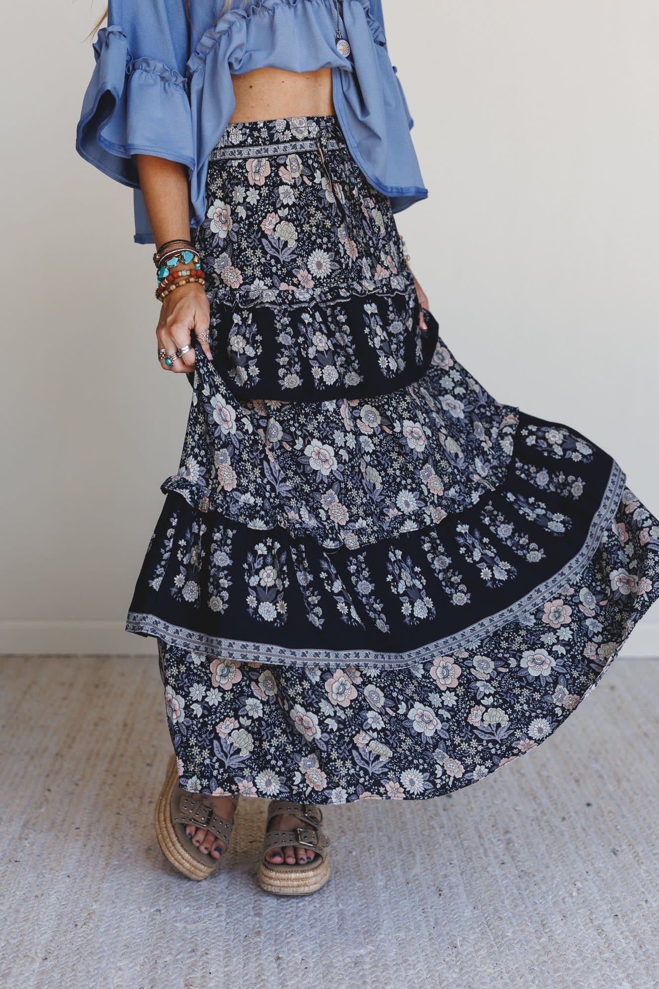 Twirl-worthy and full of vintage soul, the Prairie Dancer Floral Maxi Skirt brings effortless beauty to every step. Its flowy shape and muted florals make it a go-to for golden hour walks and spontaneous road trips.